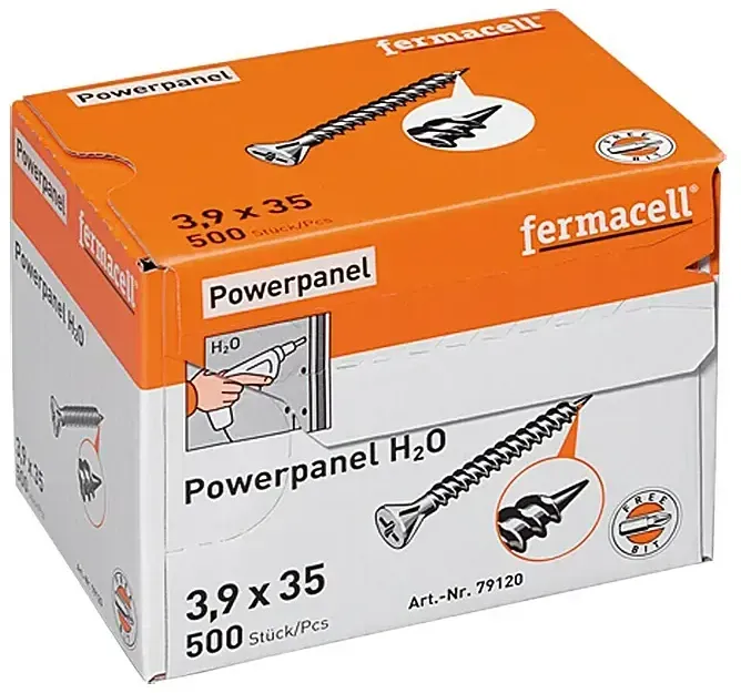 Kategorie: Kaminzubehör - Fermacell - GTIN:4007548005531 - Die korrosionsgeschützte Powerpanel H2O Schraube von Fermacell eignet sich für die optimale Befestigung von den Powerpanel H2O Platten. Sie kann vor allem in Räumen mit hoher Feuchtebelastung eingesetzt werden. Dank ihres speziellen Gewindes lassen sich die Schrauben schnell und sauber eindrehen und können optimal im Falzbereich versenkt werden. - 30,85 Euro bei BAUHAUS - gefunden von billiger.de ![]() ![]() fermacell Powerpanel - H2O Schrauben eBay 3,9 mm x 35 mm Pack = 500 St
