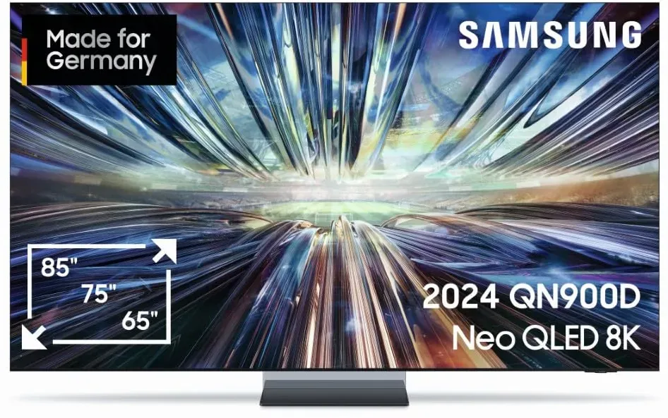 Verfügbarkeit: Auf Lager - EEK: F - Kategorie: Fernseher - Samsung - GTIN:8806095414980 - Samsung AI TV mit OLED HDR Pro und OLED Glare Free zum Genießen von einer hohen Helligkeit und starken Kontrasten bei verringerter Blendung Neural Quantum Prozessor 4K AI Gen2: Sorgt mithilfe von KI und 20 neuronaler Netzwerke für ein atemberaubendes Seherlebnis und gestochen scharfes 4K AI Upscaling Durch das Infinity One Design und die anbringbare Slim One Connect Box entsteht ein ästhetisch ansprechendes, minimalistisches Design Dolby Atmos und Top Channel-Lautsprecher für ein multidimensionales Sounderlebnis, Samsung Smart Hub und Gaming Hub für alle deine Lieblings-TV- und Gaming-Apps an einem Ort Lieferumfang: 1 x Samsung KI Fernseher GQ65S95DATXZG, OLED 4K S95D, 65 Zoll, Smart TV, Inkl. Fernbedienung Premium Solar Smart Remote, Deutsches Modell [2024] - 1999,00 Euro bei Amazon Marketplace CE - gefunden von billiger.de Der Samsung Neo QLED 8K QN900D ist ein Premium-8K-Fernseher mit dem Neural Quantum 8K AI Gen3 Prozessor und Infinity Screen für ein unvergleichliches Seherlebnis. ![]() ![]() Samsung Neo QLED 8K QN900D Fernseher 65 Zoll, Samsung TV mit Neo Quantum HDR 8K Pro, Neural Quantum 8K AI Gen3 Prozessor, 8K AI Upscaling, Smart TV, KI TV, GQ65QN900DTXZG, Deutsches Modell [2024]