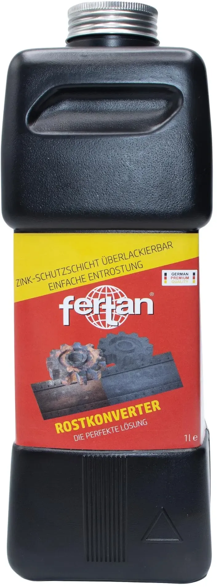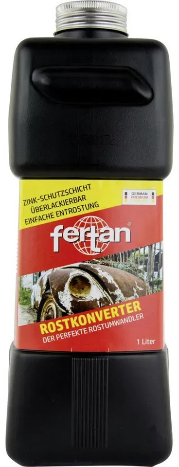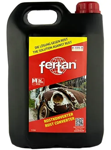 Zustand: Neu - Rostumwandler & -entferner Rostumwandler & Rostentferner - Fertan - - EAN: 4007089006509 - Brand: Fertan Fertan Rostentferner, Rostkonverter - Der perfekte Rostumwandler inkl. Pinsel von E-Com24 (Fertan 1 Liter) Product Type: BUILDING_MATERIAL - Verkäufer: E-Com24 im amazon.de Marketplace Dieses 5-Liter-Gebinde ist die beste Wahl für sehr große Projekte oder den professionellen Einsatz, da es die größte Menge zum besten Literpreis bietet. ![]() ![]() FERTAN ROSTKONVERTER - 5 LTR (22830)