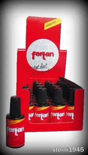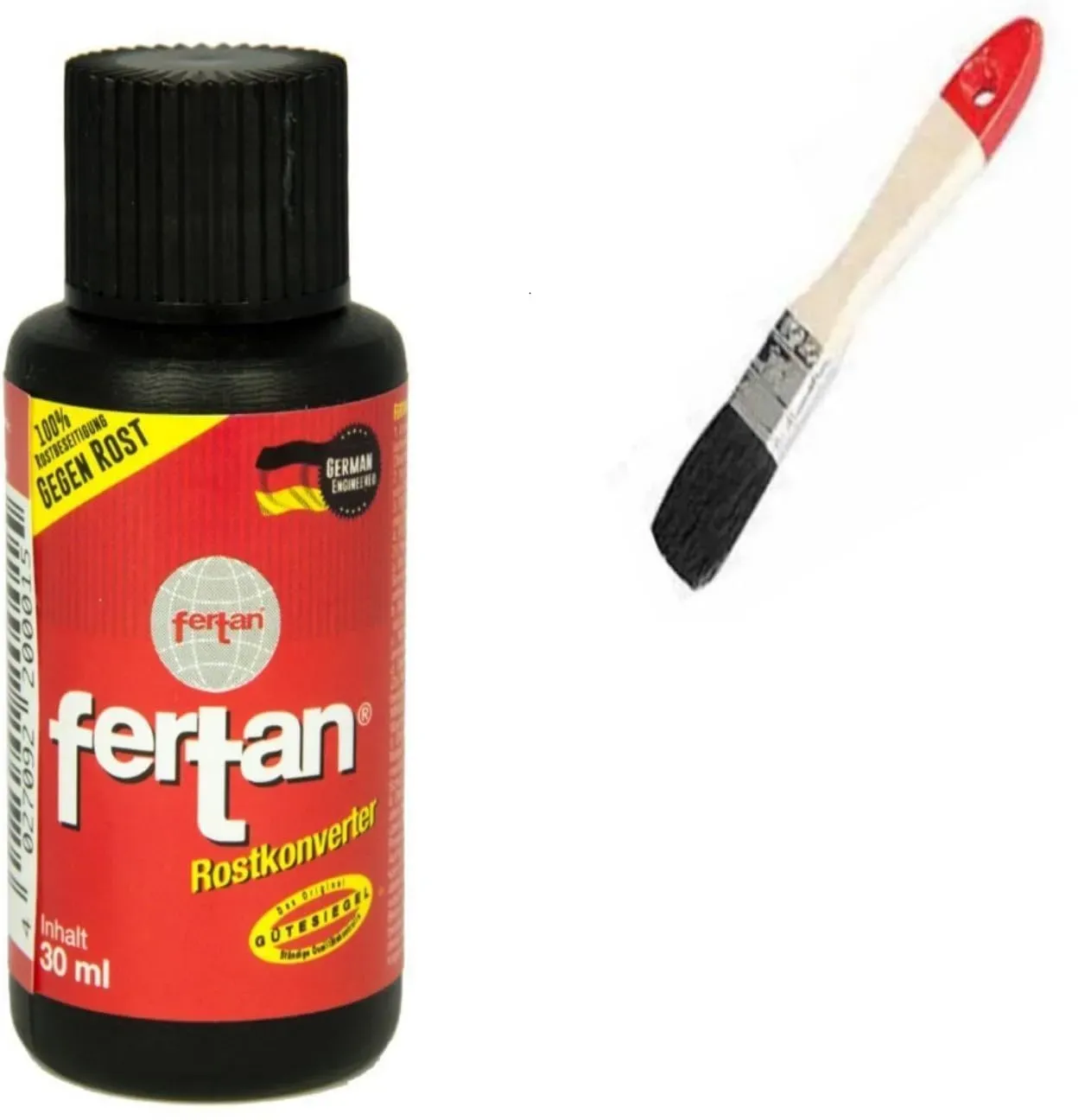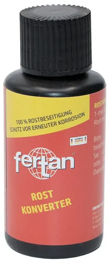 Kategorie: Ganzkörperpflege - Fertan - GTIN:4007089029256 - Marke: Fertan Fertan Rostentferner, Rostkonverter - Der perfekte Rostumwandler inkl. Pinsel von E-Com24 (Fertan 30 ml) - 7,95 Euro bei Amazon Marketplace Home Improvement - gefunden von billiger.de Ein kompakter 30ml Rostkonverter, der sich gut für präzise Anwendungen und kleinere Flächen eignet. ![]() ![]() Fertan Rostkonverter/Rostumwandler 30ml / 0,03 Liter/Entrosten