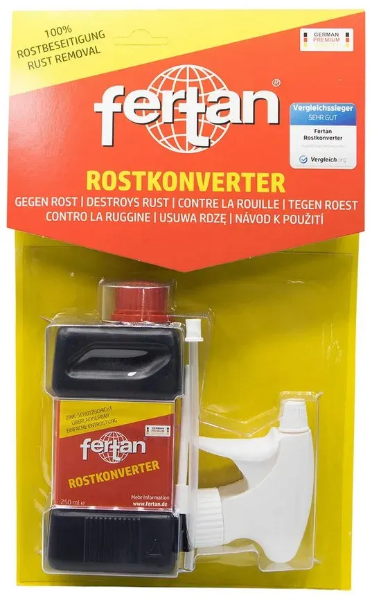 35,49€/l - Der angezeigte Preis könnte seit dem letzten Update gestiegen sein - EAN: 4027092226015 - Fertan 1 L Rostkonverter (22601) - Technische Informationen: Inhalt: 1 Liter | FERTAN Rostumwandler ist ein hochwirksames Produkt gegen Rost | Die Rostschicht wird chemisch aufgelöst und das behandelte Metall zusätzlich durch eine neue... - Zustand: NEW - bei ATP Autoteile GmbH - gefunden von Buycentral Dieses 1-Liter-Gebinde ist ideal für umfangreichere Rostbehandlungen und wird mit einem Pinsel geliefert. ![]() ![]() Fertan Rostentferner, Rostkonverter - Der perfekte Rostumwandler inkl. Pinsel von E-Com24 (Fertan 1 Liter)