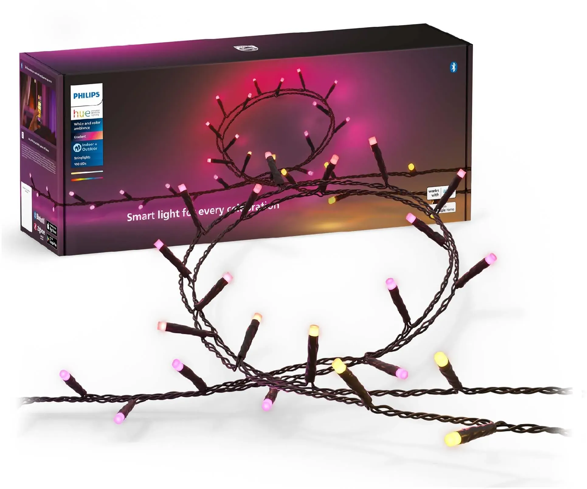 Verfügbarkeit: 1-3 Werktage - Kategorie: Lichterketten - Philips - GTIN:8720169371477 - The Philips Hue Festavia string lights are the perfect addition to any indoor and outdoor space where you want to decorate for anything between holidays, festive events and a cozy everyday ambiance. This Festavia Globe string light features 10 shatterproof globe-shaped smart bulbs along a 7-meter cord. The bulbs can display millions of colors and nuances of white light, and each bulb is replaceable if needed. It is a weatherproof string light, making it ideal for creating a cozy glow or colorful party vibes around your garden, terrace or balcony. You€™ll find a wide array of preset scenes and dynamic light effects in the Hue app, and you can also personalize your own settings. You can even sync your Festavia Globe string lights to your music, making the light pulse, blink and switch colors in perfect sync with your music. - 132,90 Euro bei Proshop.de - gefunden von billiger.de Für 144 Euro erhalten Sie hier eine 20m Festavia Lichterkette mit 250 Mini-LEDs, ein gutes Preis-Leistungs-Verhältnis für eine mittlere Länge. ![]() ![]() Philips Hue Festavia Lichterkette 20 m 250 Mini-LEDs dimmbar