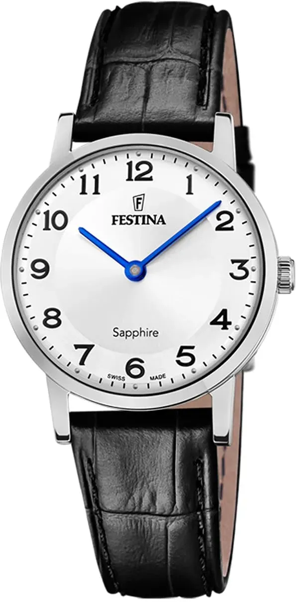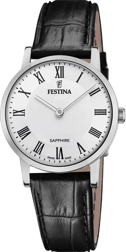 keine Angabe Gewöhnlich versandfertig in 2 bis 3 TagenFestina Swiss Made Damen Armbanduhr Schwarzes Leder - Quarzwerk - Saphirglas Hohe Widerstandsfähigkeit - Wasserdicht bis 5 ATM - Elegant Klassisch Vintage F20013/4