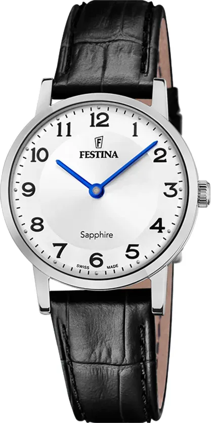 Verfügbarkeit: versandfertig in ca. 4-7 Tagen - Kategorie: Damenuhren - Festina - GTIN:8430622807527 - Festina Quarz Damen Swiss Made mit weißfarbigem Zifferblatt und schwarzfarbigem original Festina Armband aus Leder - 119,20 Euro bei uhrenlounge.de - gefunden von billiger.de ![]() ![]() Festina Damen Armbanduhr Swiss Made Edelstahl/Leder Blau-Silber, Durchmesser: 29mm, Wasserdichtigkeit: 5 Bar, F20013/3
