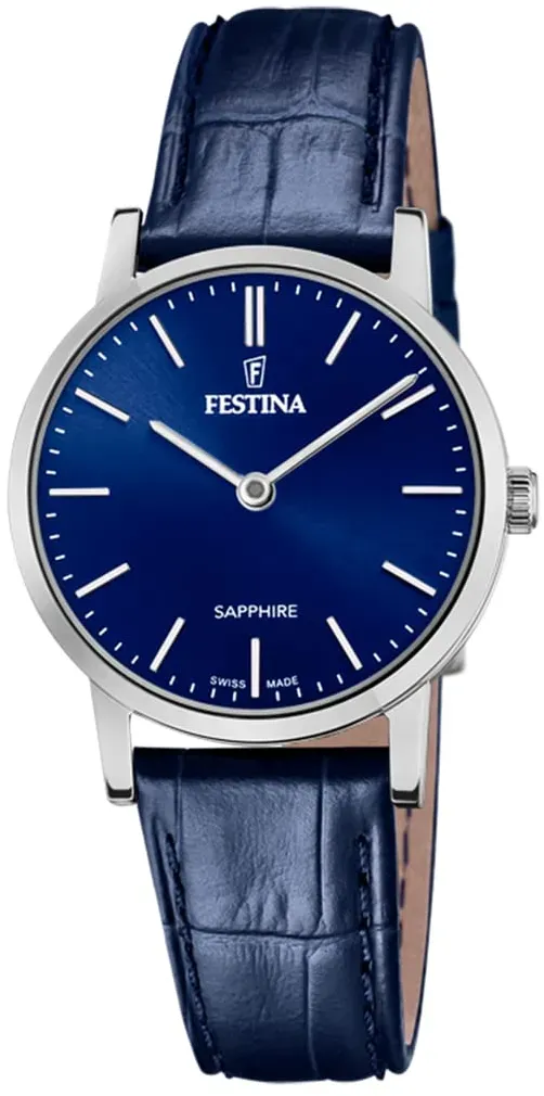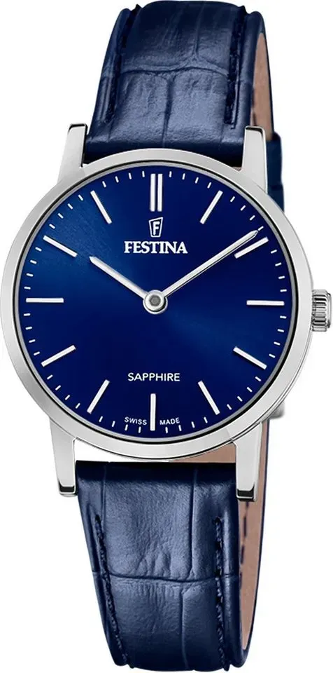 keine Angabe Gewöhnlich versandfertig in 4 bis 5 TagenFestina Swiss Made Damen Armbanduhr Blaues Leder - Quarzwerk - Saphirglas Resistent - Wasserdicht bis 5 ATM - Elegant Klassisch Vintage F20013/3 - Classic Leather