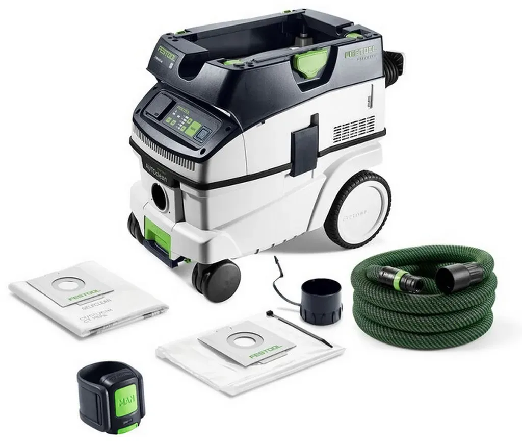 Reinigen Sonstige - EAN:4014549430637 - Freier Filter. Dank automatischer Abreinigung AUTOCLEAN. Eigenschaften: AUTOCLEAN: Effektivere, automatische Hauptfilterabreinigung für konstant hohe Saugleistung. Abreinigungsintervalle (15, 30, 60 oder 120 Sekunden) per App einstellbar. Vollabreinigung bei stark zugesetztem Filter Intuitiv: Touch-Bedienung für einfache Steuerung des Saugers Automatik-Steckdose: Für kabelgebundene Elektrowerkzeuge. Startet das Elektrowerkzeug, startet automatisch auch dein Sauger Saugleistung: Kann je nach Anwendung in 5 Stufen eingestellt werden Smart: Durch die integrierte Bluetooth R Technologie startet der Sauger über Bluetooth R Akkupacks oder optionale Fernbedienung automatisch Komfortabel: T-LOC Funktion für leichte Anbindung der Systainer auf dem Absaugmobil Leistungsstark: Konstant hohe Saugleistung durch kompakte Hochleistungsturbine Antistatik-Funktion: Gegen statische Aufladung beim Arbeiten Aufgeräumt: Schlauchdepot und Kabelaufwicklung für mehr Ordnung und Sicherheit Glatter Saugschlauch: Mit konischer Geometrie für reibungslose Abläufe ohne Einhaken und starke Saugleistung Transport: Große, schwenkbare Rollen und integrierte Bremse für optimale Mobilität und sicheren Stand Wirtschaftlich: Optimale Volumenausnutzung des Behälters Aufrüstbar: Mit Druckluftmodul oder Steckdosenmodul Zulassung: Staubklasse M Anwendung: Für gesundheitsgefährdende Holzstäube und mineralische Stäube der Staubklasse M mit Grenzwerten 0,1 mg/m³ Flexibel und ... Dieses eBay-Angebot ist preislich sehr kompetitiv und bietet das Standardmodell des Absaugmobils. ![]() ![]() FESTOOL Absaugmobil - CLEANTEC CTM eBay 26 EI AC - 577851