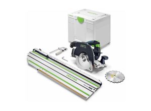 5 Händlerangebote bei billiger.de - Kategorie: Handkreissägen - Festool - ' Lieferumfang: - 1x Festool HKC 55 Akku Handkreissäge - 1x Festool Kreissäge blatt HW 160x1,8x20 W18 ( 500458 ) - 1x Innensechskantschlüssel SW5 - 2x Festool BP 18 Li 4,0Ah HPC-ASI Akkupack 18 V 4,0 Ah ( 205034 ) - 1x Festool TCL 6 Schnellladegerät ( 201135 ) - 1x Festool Systainer SYS3 M 337 Produktbeschreibung: Die Festool Akku Handkreissäge HKC 55 ist ideal für Längs- und Querschnitte bei einer Materialstärke von bis zu 55 mm, zum Ablängen von Dachlatten, zum Zusägen von Schalbrettern und Einschalungen, zum Zusägen von Brettern und zum Zuschneiden von Plattenmaterial. Die Handkreissäge aus dem Hause Festool überzeugt mit dem leistungsstarken, bürstenlosen EC-TEC Motor, betrieben mit 18 V Lithium-Ionen Akkus, wodurch optimale Schnittergebnisse erzielt werden. Die koppelbaren Kappschienen sorgen für eine schnelle und winkelgenaue Durchführung von Kappschnitten. Mit der Schnitttiefeneinstellung mit Tauchfunktion, der Pendelhaubenfernbedienung und dem Führungskeil kann sicher, komfortabel und situationsgerecht gearbeitet werden. Mit der HKC 55 sind Winkeleinstellungen mit Zentralklemmung von 0° - 50° möglich. Festool ist ein Premiumhersteller von Elektrowerkzeugen, eine sehr hohe Verarbeitungsqualität sowie ausgeklügelte Konzepte zeichnen den Hersteller aus. Technische Daten: Hersteller: Festool Herstellerbezeichnung: HKC 55 EB-Basic Herstellernummer: 576163 Akkuspannung: 18 V Sägeblattdurchmesser: 160 ... Ein Premium-Angebot mit der HKC 55 EB-Basic, zwei 8,0 Ah Akkus, Schnellladegerät und Systainer, für maximale Leistung und Ausdauer. ![]() ![]() Festool HKC 55 EB-Basic Akku-Handkreissäge 18 V 160 mm inkl. 2x Akku 8,0 Ah + Schnellladegerät + Systainer