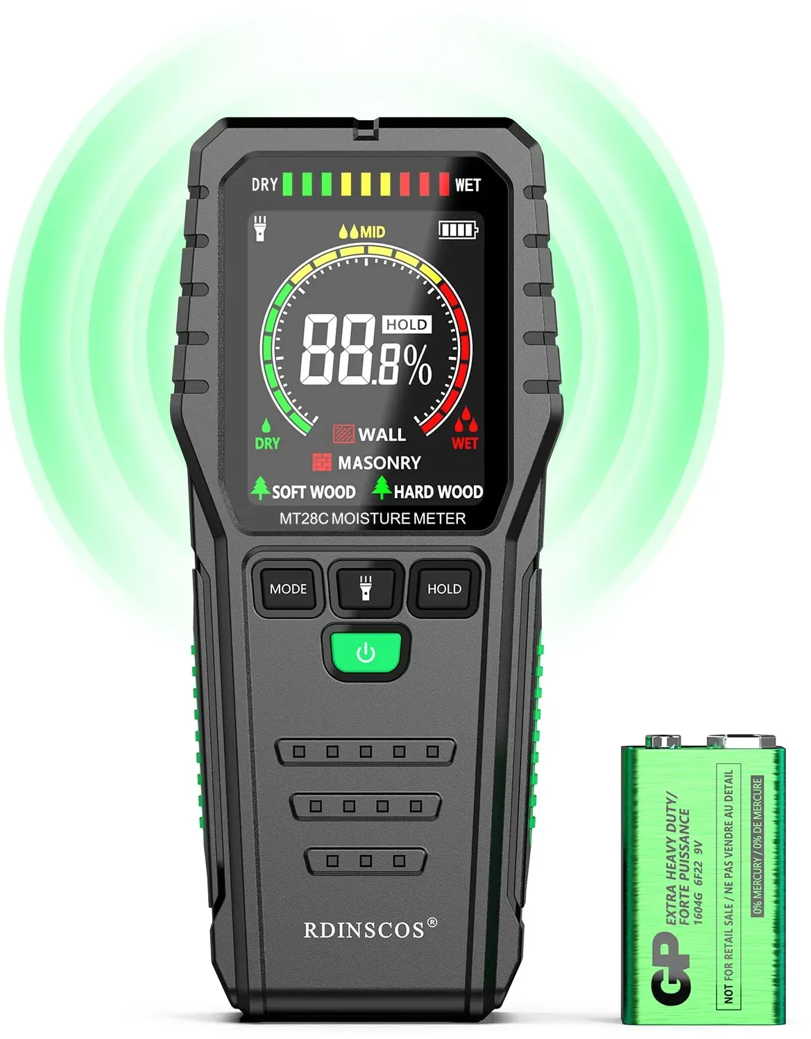 Zustand: Neu - Feuchtigkeitsmessgeräte - RDINSCOS SHENZHEN REDDRAGON INSTRUMENTS CO.,LTD - MT19C01 - - Feuchtemessgerät mit Spitzen: Ideal für Holz, erkennt Feuchtigkeit durch Leckagen und Lecks. Misst den Wassergehalt der Materialien und hinterlässt kleine temporäre Löcher. Perfekt für Keller, Küchen, Badezimmer und andere gefährdete Bereiche. Klare Ergebnisse: Ausgestattet mit einem großen Display mit Hintergrundbeleuchtung für einfaches Ablesen und enthält audiovisuelle Alarme, die ausgelöst werden, wenn die Messwerte die Grenzen überschreiten Bildschirmsperre: Ausgestattet mit einer Hold-Funktion zum Blockieren von Messungen, wodurch das Ablesen der Ergebnisse in schwer zugänglichen Bereichen erleichtert wird Unterstützung mit Taschenlampe: Die integrierte Taschenlampe sorgt für fließende Messungen auch in dunklen Umgebungen Tipps 1: Um optimale Ergebnisse auf den Feuchtigkeitsgehalt des Holzes zu erzielen, drücken Sie die Stifte tief in das Material, um sicherzustellen, dass die Stifte mit dem Material in Kontakt kommen (Wand, Holz oder Hartholz) - Verkäufer: Amazon im amazon.de Marketplace ![]() ![]() RDINSCOS Feuchtigkeitsmessgerät MT18C Pin-Feuchtemessgerät für Holz, Brennholz, Wand & Baumaterial Holzfeuchtemesser mit 3-farbiger LCD-Anzeige, Alarm, Hold-Funktion & automatischer Abschaltung