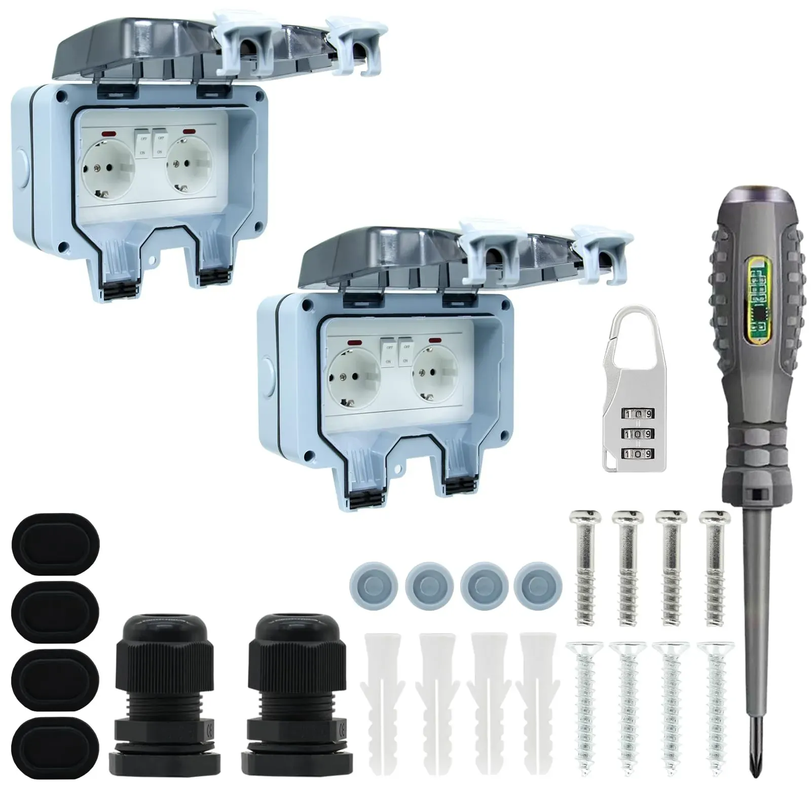 Gebäudetechnik & Smart Living Elektroinstallation Schalterprogramme Busch-Jaeger Schalterprogramme Busch-Jaeger Feuchtraum-Schalterprogramme Elektronik und elektronische Komponenten - EAN:4011395993316 - - gefunden von Kelkoo Dieses 2er Set von joyelec bietet zwei wasserdichte Außensteckdosen mit Schalter und Kontrollleuchte, ideal für den Garten oder andere Außenbereiche. ![]() ![]() joyelec 2 STüCK Außensteckdose Wasserdicht Steckdose IP66 1fach mit Schalter Kontrollleuchte,Wandsteckdose Feuchtraum Aufputz Schutzkontakt Gartensteckdose Staubdicht Wetterfest Outdoor Steckdose