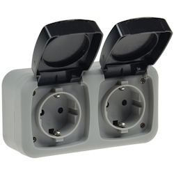 Sofort lieferbar, 3-6 Werktage in_stockLEGRAND Schuko Steckdose 2-fach, senkrecht, Aufputz Feuchtraum, Plexo 55, mit Deckel