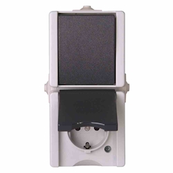 Stromanschlüsse & Steckdosen Elektroinstallationen & Smart Home Schalter & Steckdosen Steckdosen Schutzkontakt-Steckdosen Elektronik und elektronische Komponenten - EAN:3245060697303 - Allgemeine Beschreibung Die SCHUKO Steckdose 1-fach, Aufputz Feuchtraum, Plexo 55, ist eine robuste und vielseitige Lösung für den Einsatz in feuchten Umgebungen. Sie bietet eine hohe Schutzart von IP55 und ist ideal für den Einsatz im Außenbereich oder in Bereichen mit hoher Luftfeuchtigkeit. Technische daten Schutzart: IP55 Material: Thermoplast, schlagfest IK07, UV-beständig, halogenfrei Maße (BxHxT): 80 x 84 x 62 mm Nennstrom: 16 A Spannung: 250 V ~ AC Frequenz: 50-60 Hz Gehäusefarbe: hellgrau (ähnlich RAL 7035) Wippe/Deckel: grau (ähnlich RAL 7046) Kompatibilität und Zubehör Kabeleinführung für Kabelquerschnitte bis 5x2,5 mm² Installation Einfache Kabeleinführung mit schraubenlosen Verbindungsklemmen, geeignet für starre und flexible Leiter Großer Verdrahtungsraum zum Durchverdrahten von Kabeln und Leitungen Anwendung Die Steckdose ist für den Einsatz in feuchten Räumen und im Freien konzipiert. Sie eignet sich hervorragend für Baustellen, Garagen, Gärten und andere Bereiche, in - gefunden von Kelkoo Diese PRO AQA Steckdosenkombination mit Wechselschalter ist eine vielseitige Lösung, die sowohl eine Steckdose als auch eine Schaltfunktion bietet. ![]() PRO AQA Steckdosenkombination, Aufputz, Wechselschalter, anthrazit, IP44, matt