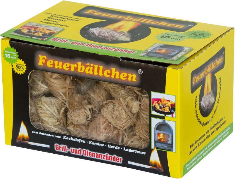 EAN: 4260171320055 - Produktdetails:500gAnzünder für Kachelöfen, Kamine, Herde und Grillsextrem sparsam im Verbrauchsehr lange Brenndauer bis zu 10 Min.aus reinen Naturprodukten (Wachs- und Naturholz)hinterlässt keine schädlichen RückständeUnbeschränkt haltbar und unempfindlich gegen NässeLieferumfang:Feuerbällchen Grill- und Ofenanzünder 500g FEUERBäLLCHEN Grill- und Ofenanzünder, 500 gProduktbeschreibung:Die cleveren Anzünder für Kachelöfen, Kamine, Herde und Grills. Extrem sparsam im Verbrauch, sehr lange Brenndauer bis zu 10 Min. Aus reinen Naturprodukten (Wachs- und Naturholz), hinterlässt keine schädlichen Rückstände. Unbeschränkt haltbar und unempfindlich gegen Nässe.Anwendung: für: Kamin, Kachelofen, Holzkohlegrill, LagerfeuerEigenschaften:Naturprodukt aus Wachs und Hiolzkeine schädlichen RückständeBrenndauer 10 bis 15 min.Extrem sparsam im VerbrauchGebrauchsanweisung:Anzünden: Feuerbällchen zwischen das Holz oder Holzkohle legen und anzünden. Sorgen Sie für genügend Luftzufuhr. Beachten Sie bitte die Sicherheitsanweisungen für Ihr Heiz- oder Grillgerät.Beim Grillen: Legen Sie bitte das Grillgut erst auf, wenn das Feuerbällchen vollständig verbrannt und die Holzkohle richtig durchgeglüht ist.Hinweis: Feuerbällchen nicht über 45 C lagern und für Kinder unzugänglich aufbewahren.Packungsgröße: 500 gAnwendung durch nichtberufliche Anwender zulässig. Diese Produktinformationen ersetzen nicht die Beachtung der Gebrauchsanweisung und erheben keinen Anspruch auf ... Dieses Angebot ist empfehlenswert für Kunden, die das Originalprodukt in einer 1 kg Tüte suchen und Wert auf Naturprodukte und deutsche Herstellung legen. ![]() ![]() Feuerbällchen - das Original - zum Anzünden von Kachelofen, Kamin, Herd, Grill, Lagerfeuer - aus reinen Naturprodukten - unempfindlich gegen Nässe - Made in Germany - 1 kg Tüte (ca. 80 Stück)