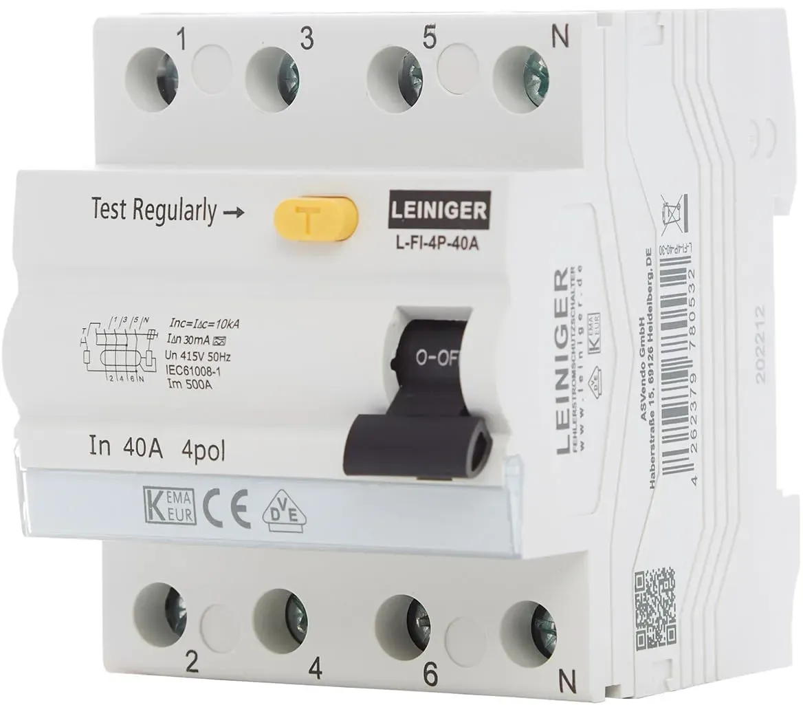 Kategorie: Sonstige Elektroinstallationsartikel - leikurvo - GTIN:0766683532299 - Kompakter Fehlerstrom-/Leitungsschutzschalter FI/LS-Schalter Integrierter überlast- und Kurzschlussschutz, der Leitungsschutzschalter Typ C wird im Falle einer überlastung oder eines Kurzschlusses ausgelöst, um die Sicherheit des Stromkreises zu gewährleisten. Sicherheitsschutz FI/LS-Schalter unterbricht Stromlecks innerhalb von Sekunden, blockiert versteckte Gefahren von Kurzschlüssen und Leitungsüberlastungen und gewährleistet so Sicherheit und Zuverlässigkeit. Schnelle Fehlerauslösung Der FI/LS-Schalter 16A löst innerhalb von 0,1 s aus, sobald er einen Erdschluss ( 30 mA) erkennt. Leitungsschutzschalter Wird hauptsächlich in Geräten verwendet, die mit AC 50/60 Hz, 230 V Nennspannung und 16 A Wechselstrom betrieben werden. Breite Anwendungen Der Fi-Schalter Sicherungsautomat 16 A mit 6 kA Ausschaltvermögen eignet sich für Solar-Wechselstromsysteme, Wohnmobile, Heimstromkreise oder andere 50/60-Hz-Wechselstromsysteme. Ausgestattet Mit Testtaste Zur überprüfung Fehlerstromschutzschalter des internen Betriebs des Geräts sollte diese alle 30 Tage durchgeführt werden. Sie haben die Wahl zwischen Leistungsschaltern vom Typ A mit einem Nennstrom von 16A B Kurve. - 14,99 Euro bei Amazon Marketplace Automotive - gefunden von billiger.de Ein solider 4-poliger FI-Schalter von Lapp mit 40A und 30mA, der sich gut für Standardinstallationen eignet. ![]() ![]() Lapp Fehlerstromschutzschalter FI-Schalter RCD 4-polig 40A 30mA Installation (Schutzschalter)