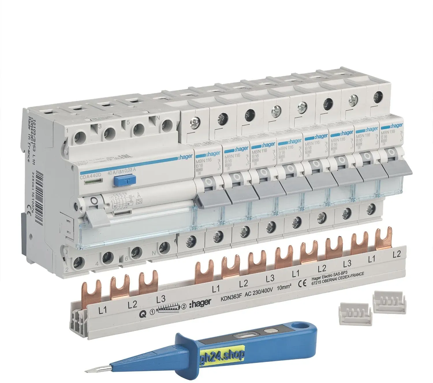 Kategorie: Sonstige Elektroinstallationsartikel - els elektrotechnika - GTIN:5903068707285 - Der Baustromverteiler besitzt 4 x 16A/230V/IP54 Schuko-Steckdosen. Alle die 230V-Steckdosen sind mit Klappen ausgestattet, die die Dichtheit IP54 gewährleisten, was sich direkt auf die SICHERHEIT bei der Verwendung der Schaltgeräte auswirkt. Das Produkt enthält je 1 x FI-Schalter 40A 30mA 2 - Polig 6kA typ A & 4 x zuverlässige LS Schalter C16A 1 - Polig 6kA. Alle LS-Schalter und FI-Schalter mit Intertek 'S' Zeichen versehen. Der Stromverteiler ist dank seines IP65 Gehäuse allen Wetterbedingungen angepasst und kann sowohl im Außen- als auch Innenbereich genutzt werden. Er ist für die Wandmontage vorgesehen. Der Wandverteiler ist mit N+PE Klemmen versehen und ist vollständig verdrahtet und betriebsbereit. Eine PG16-Kabelverschraubung ist ebenfalls enthalten. Praktischer Wandverteiler für Industrie, Handwerk und Hobby. Das robuste und schlagfeste Gehäuse aus ABS-Kunststoff gewährleistet eine problemlose Belastung der Steckdosen beim Ziehen der Stecker. In unseren Schaltschränken sind 230V-Steckdosen und CEE 16A immer mit 2,5mm2 Kabel verdrahtet. CEE 32A Steckdosen sind immer mit 4mm2 Kabel verdrahtet. Die Maßen: 150x260x130 mm [B x H x T]. Das Gehäuse ist mit einem 6-poligen UV-beständigen Sichtfenster ausgestattet. Temperaturbeständigkeit: -25 C bis +60 C. Der Stromverteiler ist vorverkabelt, anschlussfertig und auf elektrische Sicherheit und Qualität geprüft. Wir stellen seit vielen ... Ein praktisches Einbaupaket von Hager mit FI-Schutzschalter, Sicherungen und Kammschiene für eine einfache Installation. ![]() ![]() grenda-hammer | Einbaupaket Hager 1x FI-Schutzschalter 30mA, 8x Sicherungen B16A, 1x Kammschiene, 2x Endkappen und 1x gh24 Phasenprüfer