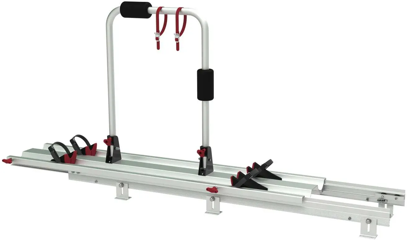 Kategorie: Fahrradträger - Fiamma - GTIN:8004815387051 - Herausziehbare Schiene für die Heckgarage, nun noch breiter für ein einfacheres Beladen, nur 7,5 cm hoch, höhenverstellbar von 8 cm bis 12 cm. Patentiertes Gleitsystem für eine sanfte und bequeme Bedienung. Das untere Profil wird am Boden angeschraubt, während das obere Profil auf leisen Stahlrollen aus Polyamid bedeckt, zwischen den Schienen läuft (Kugellagerung). Komplett mit Sicherheitsbefestigungen sowohl im eingefahrenem als auch ausgefahrenem Zustand. Komplett mit: - 1 Trägerstruktur (klappbar) - 2 Strip - 4 Feststellklötzen Premium S - 2 Protection Pads zum Transport von 2 Fahrrädern. Einfach Montage mit dem mitgelieferten Kit. Beschreibung Garage Slide Pro Bike Fahrzeug Reisemobil Serienmäßig/max transportierende Fahrräder 2 / 2 Strip 2 x enthalten Gewicht / maximale Tragkraft 9,9 kg / 50 kg Montagehalterungen enthalten - 386,00 Euro bei Fritz-Berger - gefunden von billiger.de Speziell für den VW T6 entwickelt, bietet dieser Träger Platz für bis zu drei Fahrräder und ist eine zuverlässige Transportlösung. ![]() ![]() FIAMMA Carry Bike VW T6 Fahrradträger für 3 Fahrräder