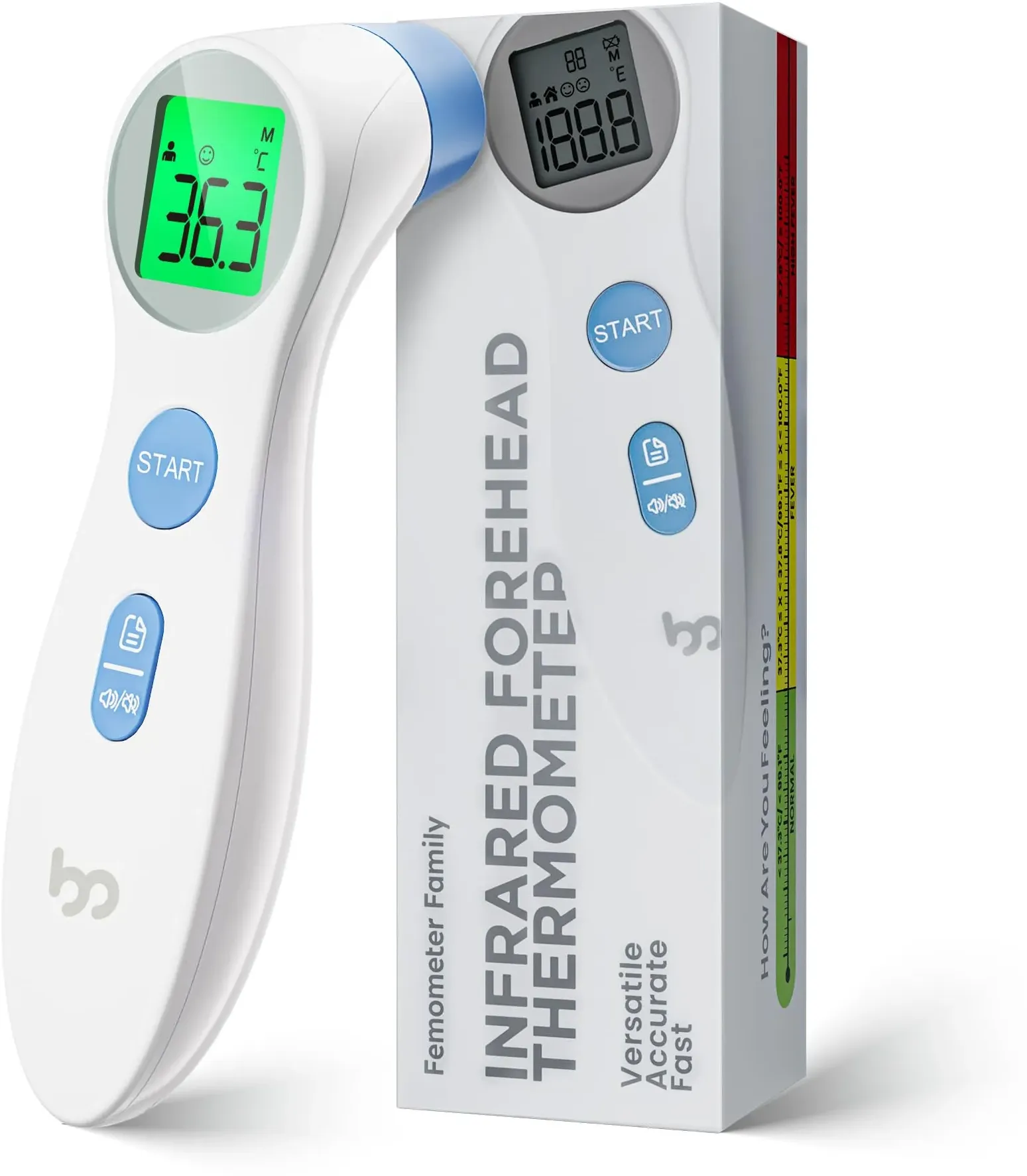 Kategorie: Fieberthermometer - femometer family - GTIN:0810115236498 - Idealer Fieberalarm für Erwachsene und Kinder 3 Hintergrundbeleuchtungsanzeigen (Grün, Gelb, Rot) für verschiedene Temperaturniveaus, angezeigt auf dem großen und klaren LCD-Bildschirm. Der LCD-Bildschirm wird rot und gibt einen Alarm aus, wenn die Temperatur anormal ist Berührungsloses digitales Thermometer Mit klinischer Validierung und medizinischer Zertifizierung kann man sich auf die Genauigkeit, Sicherheit und Benutzerfreundlichkeit unseres Stirnthermometers verlassen. Das kleine, aber handliche Thermometer sorgt für eine genaue Körpertemperatur und die beste Pflege Ihrer Familie Dualmodus und Speichermodus Halten Sie dieses intelligente Infrarot-Thermometer nahe an Ihre Stirn und drücken Sie die Taste, um in den Stirnmodus zu wechseln. Der Objektmodus ist für Essen und Raum. Der Einfachheit halber können bis zu 10 Datensätze gespeichert werden. Sie können die Temperaturaufzeichnung jederzeit lesen, um Ihre historischen Temperaturänderungen zu verfolgen. Außerdem sind F und C leicht umschaltbar Schnell und genau Mit präzisen Sensorsonden und optimierter Algorithmusberechnung liefert das Infrarot-Thermometer das Ergebnis der Messdaten innerhalb von höchstens 1 Sekunde. Dank des klaren, großen LCD-Bildschirms können Sie Tag und Nacht gut ablesen Was Sie bekommen 1 x berührungsloses Infrarot-Thermometer, 1 x Benutzerhandbuch, 2 x AAA-Batterien. Sie erhalten außerdem 12 Monate Ersatz ab Kaufdatum und ... Dieses kontaktlose Infrarot-Thermometer ist ideal für Babys und bietet eine hygienische Messung ohne direkten Körperkontakt. ![]() ![]() GERATHERM non Contact Infrarot Thermometer digital/Fieberthermometer Baby, kontaktlos/Fieberthermometer digital/Alternative zum Ohrthermometer/Geschenk zur Baby Erstausstattung