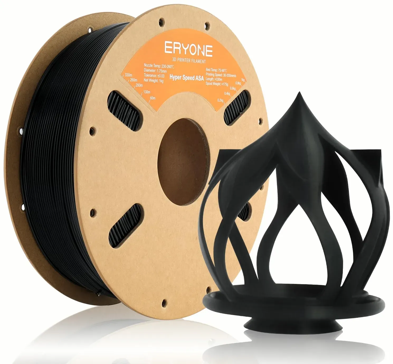 Kategorie: Zubehör für 3D-Drucker - ERYONE - GTIN:0810168130293 - 1. [Suggests Printing Parameters] Sealed printing; Print temperature range: 230 C-260 C; Bed: 75 C-90 C; Please dry the filament before printing, drying conditions: 80 C-90 C, more than 12 hours; Speed 30-50mm/s (need adjust based on your printer). 2. [High UV Resistance, Heat & Weather Resistant] ASA 3D Filament Perfect for Printing Outdoor Functional Parts, such as RC planes, car accessories, bird rooms, flower pots. 3. [Gorgeous Matte Finish] Frosted texture, simple and elegant colours. 4. [Vacuumed Sealed Packaging] Sealed vacuum bag to keep it dry and keep out dust. 5. [Weight and Spool Diameter] Net weight 1kg, shipping weight 1.35kg; spool inner diameter 57mm, spool outer diameter 200mm, height 64mm. - 21,99 Euro bei Amazon Marketplace Automotive - gefunden von billiger.de Das ERYONE High Speed Filament für 22.09 Euro ist ideal für Anwender, die schnell drucken möchten, ohne Kompromisse bei der Qualität einzugehen. ![]() ![]() ERYONE High Speed Filament ASA 1.75mm +/- 0.03mm, Rapid ASA Filament,3D Printing Filament, 30-200mm/s Hyper Speed ASA Filament, 1kg (2.2LBS) / Spool, Black