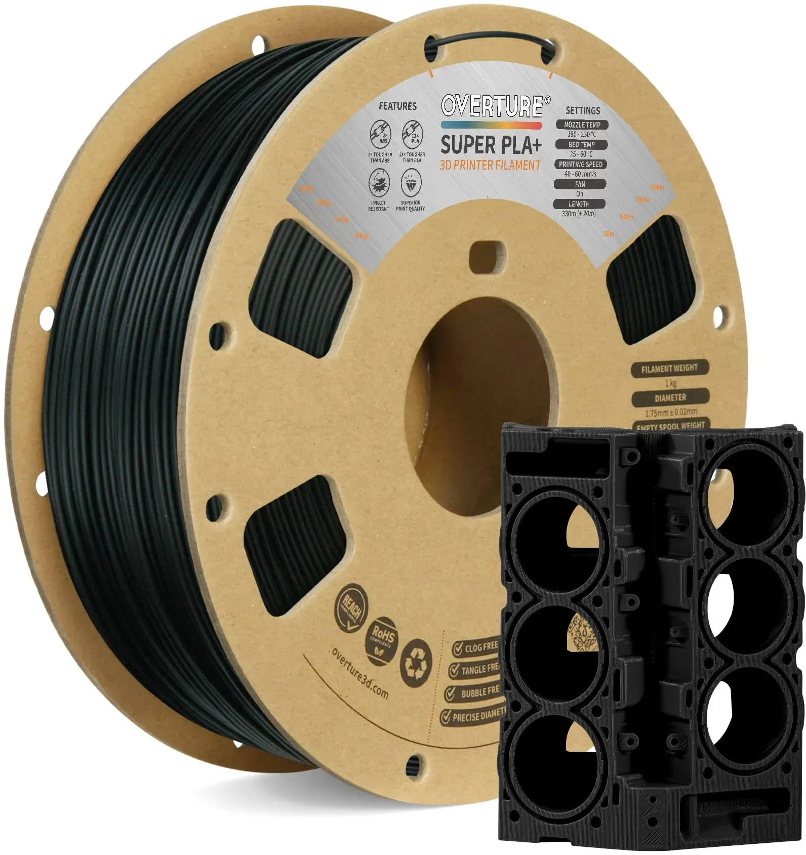 Kategorie: Zubehör für 3D-Drucker - OVERTURE - GTIN:0840302805800 - Hervorragende Eigenschaften SUPER PLA+ Filament verbessert die Schlagfestigkeit erheblich, besitzt mechanische Eigenschaften, die normales PLA nicht erreicht, und bietet eine ausgewogene Zähigkeit ähnlich wie Stahl. Gleichzeitig behält SUPER PLA+ die einfache Druckbarkeit von PLA. Diese Kombination macht es zu einem hervorragenden Ersatz für ABS (wenn die Hitzebeständigkeit von PLA ausreicht). Verstopfungsfrei, Blasenfrei & Benutzerfreundlich Mit patentierter Verstopfungsfrei-Technologie entwickelt und hergestellt, um ein reibungsloseres und stabileres Druckerlebnis mit Overture SUPER PLA+ Rollen zu ren. Vor der Verpackung 24 Stunden vollständig getrocknet und mit Trockenmitteln in wiederverschließbaren Nylonbeuteln vakuumversiegelt keine Blasen, einfach zu drucken. Anwendungen Für Drucke mit Anforderungen an Schlag- und Biegefestigkeit. Dazu gehören Maschinenteile, Drohnenzubehör, Anti-Kollisionszubehör für ferngesteuerte Autos, Halterungen, Modellprototypen, Haken usw. Kosteneffizient & Breite Kompatibilität Mit über n Erfahrung in der Entwicklung von 3D-Filamenten und einer monatlichen Produktion von mehreren tausend Tonnen ist Overture in der Lage, Filamente aller Art in großem Maßstab und hochwertiger Qualität herzustellen. Das macht Overture-Filamente kosteneffizient und zuverlässig für die meisten gängigen 3D-Drucker, wie MK3, Ender 3, Monoprice, FlashForge und mehr. Unterstütztes & Reibungsloses ... Das iBOSS PLA+ Filament ist mit 19.99 Euro eine gute Wahl für glatte Oberflächen und hohe Maßgenauigkeit. ![]() ![]() iBOSS PLA+ Filament 1,75 mm Seideneisen schwarz, glattes Filament 3D-Druckmaterial, Größengenauigkeit +/-0,02 mm, 1KG/Spule, 2,2 Pfund kompatibel mit den meisten FDM-Druckern (Eisenschwarz)