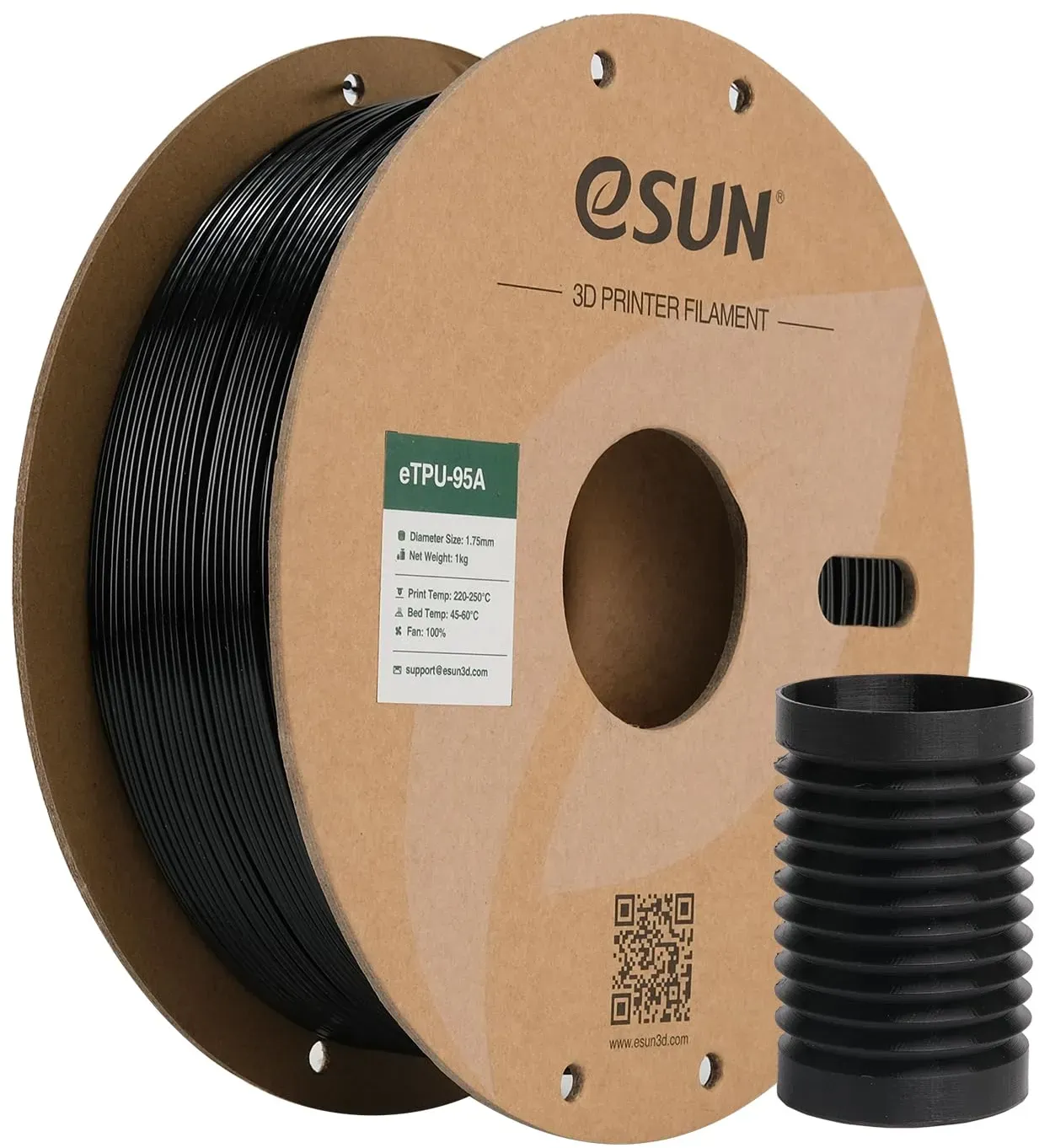 Gesamtsortiment IT + Multimedia Peripherie Drucker + Scanner Drucken 3D 3D Filament Druckerzubehör - EAN:6922572277038 - ETPU 95A (thermoplastisches Polyurethan) von eSun ist ein flexibles Material und eignet sich ideal für Anwendungen, die chemische Beständigkeit sowie die Eigenschaften von Gummi und Kunststoff erfordern. Das Drucken von TPU ist nicht für Anfänger geeignet, daher empfehlen wir es nur für fortgeschrittene Nutzer. Mit dem TPU-95A kannst du beispielsweise Reifen für dein Modellauto, Handyhüllen oder Drohnenverschalungen drucken. Info: Trocken und gut verschlossen lagern! Das Material nimmt schnell Feuchtigkeit aus der Umgebung auf. Eigenschaften: - Flexibel, ideal zum Drucken von Reifen, Dichtungen, Handyhüllen oder Drohnenverschalungen - Sehr widerstandsfähig - Top Druckergebnisse und super Preis-Leistungs-Verhältnis - Gute Schlagzähigkeit - Hitzebeständig - Sehr gute Witterungsbeständigkeit - Hohe UV-Beständigkeit - Beständig gegen viele Chemikalien und Öl Technische Details: - Farbe: Grau - Gewicht Filament: 1 kg - Durchmesser: 1,75 mm - Toleranz: ±0,05 mm - Drucktemperatur: 210-240 °C - Dichte: 1,12 g/cm³ - Bruchdehnung: 500 % - Zugfestigkeit: 52 MPa - Spulengrösse Durchmesser aussen: 20 cm - Spulenbreite: 6,85 cm - Durchmesser innen (Loch): 5,3 cm - Gewicht Filament: 1000 g - Gewicht leere Spule: 278 g - Gewicht total: 1460 g - Abmessung: 205 x 215 x 75 mm. - gefunden von Kelkoo Das EONO Leitfähiges TPU Filament ist eine spezielle Option für Projekte, die elektrisch leitende flexible Materialien erfordern. ![]() ![]() EONO Leitfähiges TPU Filament 1,75 mm, Elektrisch Leitendes TPU Flexibles Weiches Filament, 1 kg (2,2 Pfund), Maßgenauigkeit +/- 0,03 mm für FDM Drucker, Schwarz