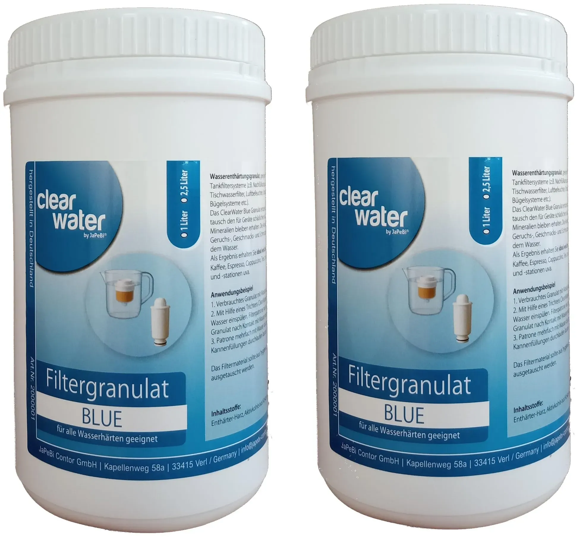 3 Händlerangebote bei billiger.de - Kategorie: Wasserfilter - japebi - Entkalktes Wasser, volle Leistung mit unserem hochwertigen ClearWater by JaPeBi BLUE Filtergranulat mit AktivkohleUnser Premium Nachfüllgranulat eignet sich ideal für die Wiederbefüllung von Wasserfiltern in Krugfiltern, Filterkannen, Kaffeevollautomaten, Bügelstationen, Luftbefeuchtern, Ultraschallverneblern und vielen weiteren Geräten. Es sorgt zuverlässig für sauberes, kalkarmes Wasser und schützt Ihre Geräte effektiv vor Verkalkung für längere Lebensdauer und besten Geschmack! Kristallklare Reinheit: Unser leistungsstarkes Granulat entfernt effektiv Kalk, Chlor, Schwermetalle sowie geschmacks- und geruchsstörende Stoffe für ein spürbar besseres Geschmackserlebnis. Langlebig & effizient: Eine Füllung reicht je nach Modell für 4-5 Wochen ideal für Haushalte mit hohem Wasserbedarf. Universell einsetzbar: Kompatibel mit allen gängigen Wasserfiltersystemen egal ob Filterpatronen für Kaffeevollautomaten, Filterkartuschen für Filterkannen oder Filtersyysteme für Bügelstationen. Nachhaltig denken Geld sparen: Mit unserem Nachfüllgranulat verlängern Sie die Lebensdauer Ihrer Filterkartuschen ('Aus Einweg mach Mehrweg') und sparen dabei bares Geld. Weniger Müll, mehr Verantwortung. Deutsches Produkt: Höchste Qualitätsstandards für Ihr Zuhause. Bitte beachten Sie, dass das Granulat von Natur aus eine leicht feuchte Konsistenz hat und dies keinen Qualitätsmangel darstellt.Anwendungsempfehlung: Je nach Gerät und ... ![]() ![]() 2L Filtergranulat Nachfüllgranulat für Wasserfilter ? gegen Kalk & Schadstoffe ? für Filterkannen, Kaffeevollautomaten, Bügelstationen, Luftbefeuchter