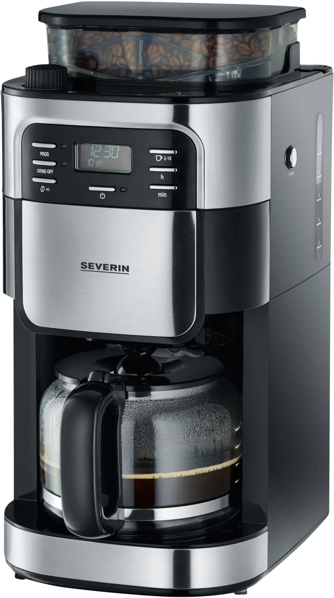 Auf Lager Versand durch AmazonSEVERIN FILKA, Vollautomat für Filterkaffee, 5-in-1 Filterkaffeemaschine mit LED-Display, Mahlwerk, mit Glaskanne, schwarz-matt/Edelstahl, KA 9694