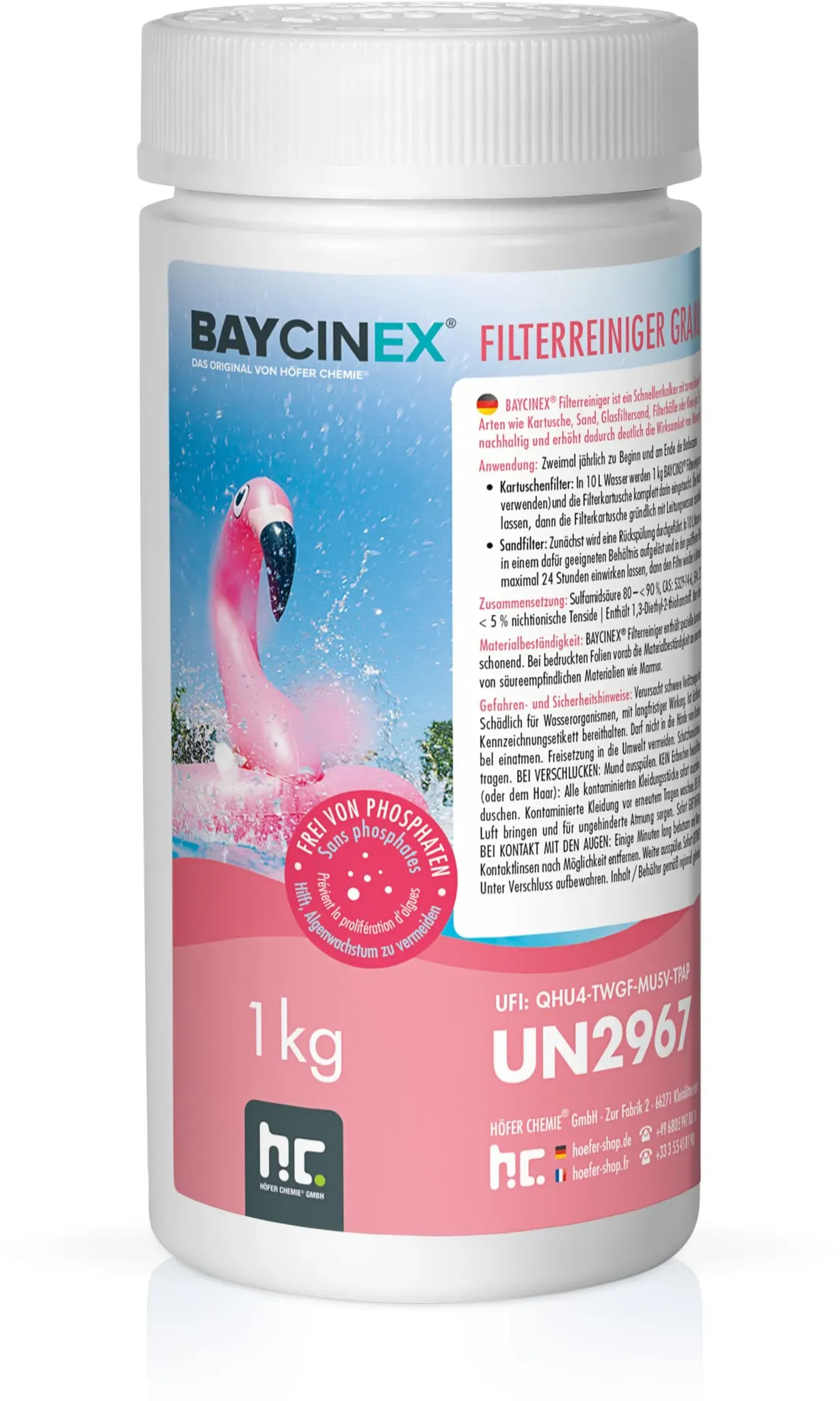 15.95 /1l - Kategorie: Poolzubehör - Chemoform - GTIN:4029156034550 - Chemoform Poolpflege Delphin Filterreiniger 1 Liter Filter Cleaner Filteranlagenreiniger - 15,95 Euro bei OTTO - gefunden von billiger.de Ein Granulat zur Entkalkung von Pool-Filtermaterialien, das eine effektive Reinigung gewährleistet. ![]() ![]() Höfer Chemie 1 kg BAYCINEX Filterreiniger Granulat zur Entkalkung von Pool Filtermaterialen