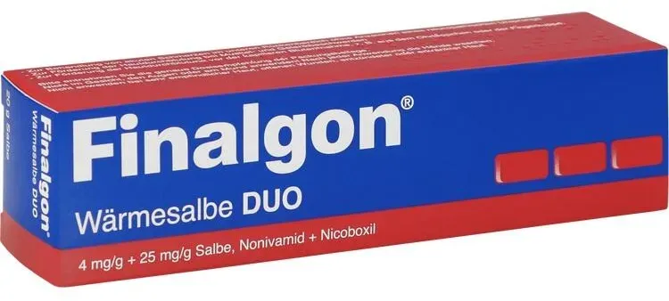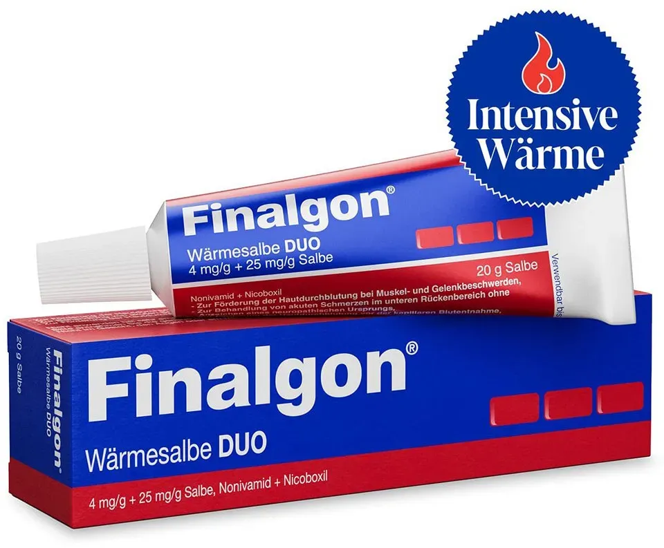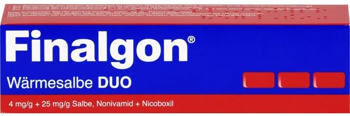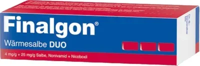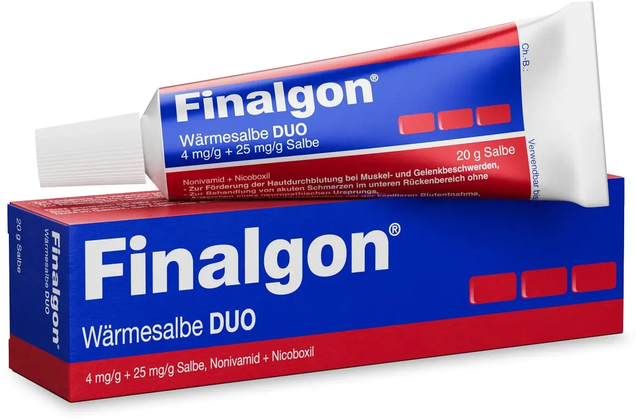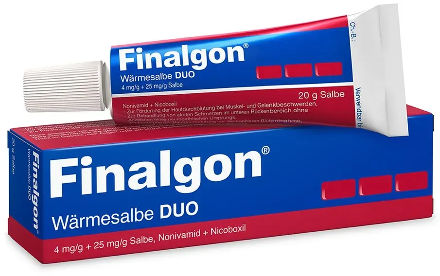 Finalgon duo META PreisvergleichMit dem Meta-Preisvergleich suchen Sie gleichzeitig bei den großen Preisvergleich Portalen!Jetzt live Suche nach finalgon duo starten! Finalgon duo KaufberatungFinalgon Duo ist eine Wärmesalbe bzw. Wärmecreme, die zur Behandlung von Muskel- und Gelenkbeschwerden eingesetzt wird. Sie enthält die Wirkstoffe Nonivamid und Nicoboxil, die die Durchblutung fördern und eine spürbare Erwärmung der Haut bewirken, was Schmerzen und Verspannungen lindert[1][3]. Wichtige Punkte, die Sie beachten sollten: