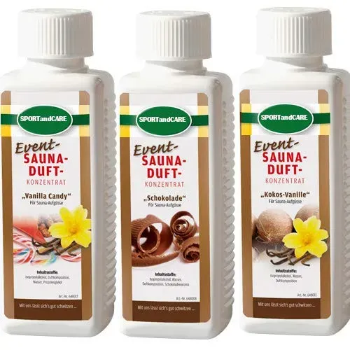 Kategorie: Saunazubehör - Finnsa - Finnsa Saunaaufguss Set Süsse Auszeit Vanille-Candy Schokolade Kokos Vanille (3 x 250 ml=750ml) - 48,41 Euro bei Amazon Marketplace Beauty - gefunden von billiger.de Dieses größere Set bietet eine breite Palette an Düften für "freien Atem" und ist ideal für regelmäßige Saunagänger. ![]() ![]() Finnsa Saunaaufguss Freier Atem: Eukalyptus, Fichtennadel, Latschenkiefer und Sauna Gold (4x250 ml)