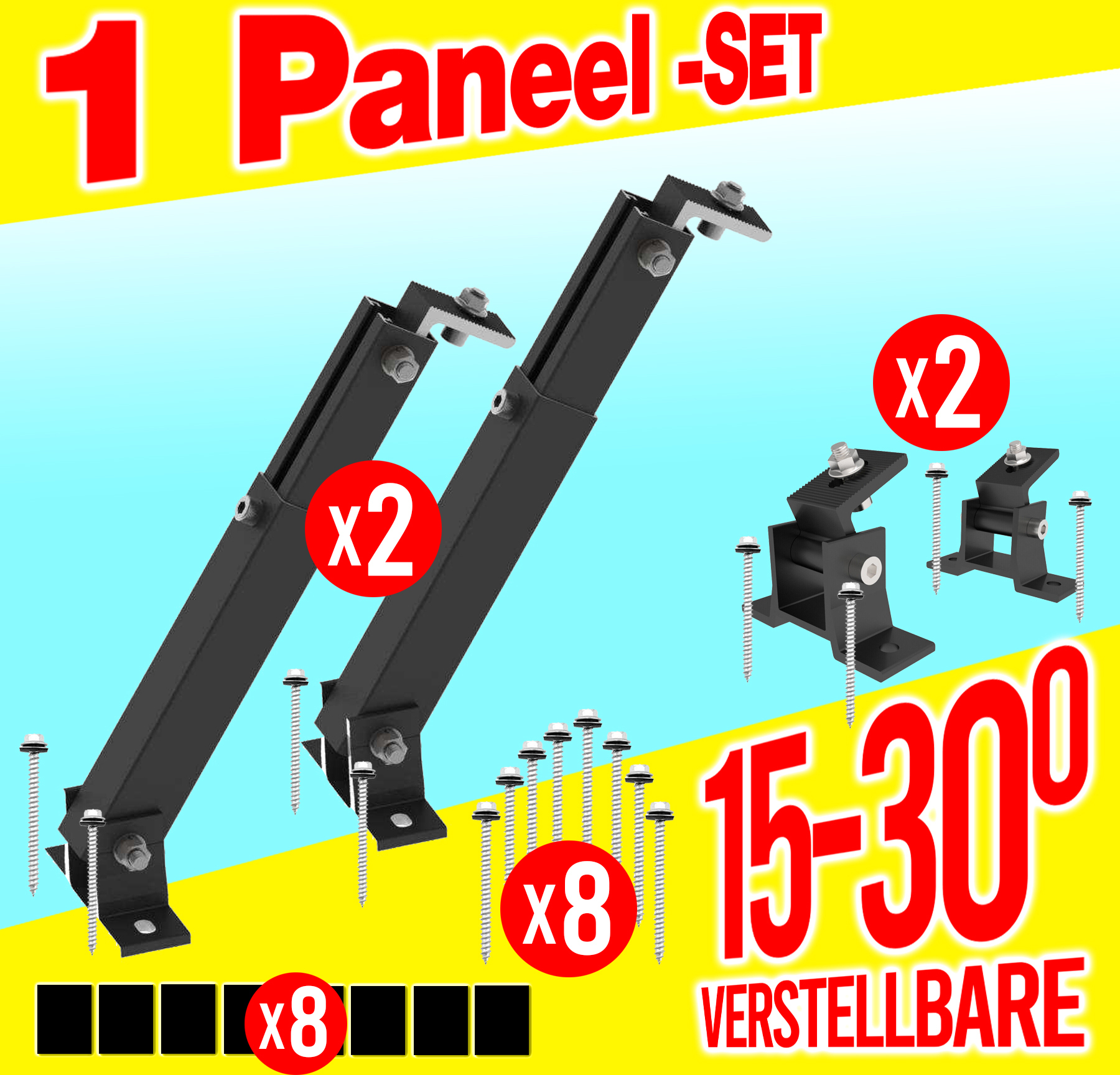 Kategorie: Solarpanel-Halterung - FIREND24 - GTIN:5904335419986 - Verstellbare Länge: 700 - 1160 mm Material Halterung: Aluminium AL6005-T5 Maße Lange Stück geschlossen: 30 x 30 x 400 mm, 30 x 30 x 700 mm Gummiunterlage: 30 x 30 x 2 mm Winkel: 30 - 60 - 22,50 Euro bei Amazon Marketplace Home Improvement - gefunden von billiger.de ![]() ![]() Aufständerung Solarmodul Halterung Balkonkraftwerk Flachdach PV VERSTELB 15-30° (1 Panel SET 15°-30°) Schwarz ALU