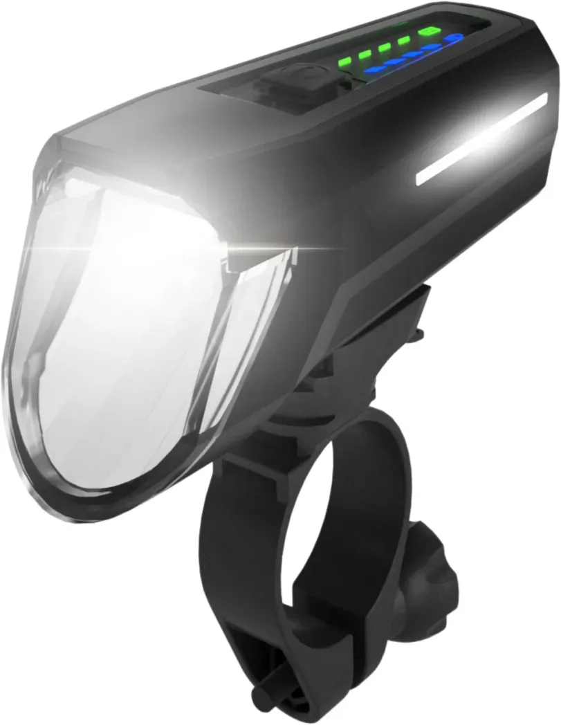 Auf Lager Versand durch AmazonFISCHER Fahrrad LED-Frontlicht 110 Lux, mit Sensormodus, Leuchtweiteneinstellung, bis zu 20 Stunden Leuchtdauer, schwarz, 1 Stück