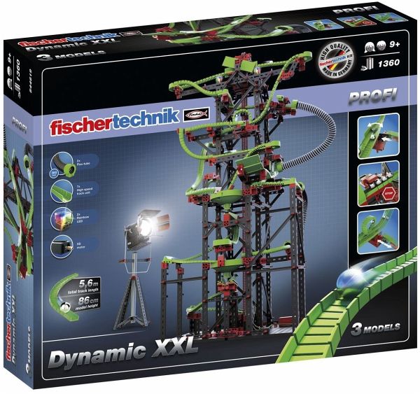 Kategorie: Baukästen & Bausteine - Fischertechnik - GTIN:4048962263350 - Ob zur Einführung in die Technik des Alltags oder zur Vermittlung der Grundlagen der Elektronik sowie Mechanik und Statik – mit den Inhalten der fischertechnik® Baukästen konstruieren Ihre Schüler anschauliche Modelle, anhand derer sie lernen die unterschiedlichen Funktionsweisen zu verstehen.Unterrichtsschwerpunkte: • Mechanik • Statik • Dynamik • Wirkung von Kräften auf Körper und Gegenstände Die wichtigsten Lernziele: • Grundlagen der Technik kennenlernen • Mechanik, Statik und Dynamik erklären • Funktionsweisen von Maschinen, Motoren, unterschiedlichen Getrieben, Lenkung, Hebel, u.v.m. verstehen • stabile Brücken, Krane, Hochsitze bauen Inhalt: • XS Motor und Batteriehalter für 9V-Block (Batterie nicht enthalten) • 500 Teile • 30 Modelle • 1 Begleitheft Ab n. Materialien: Kunststoff, Metall - 168,00 Euro bei backwinkel.de - gefunden von billiger.de Die PROFI Dynamic XXL-Kugelbahn ist ein beeindruckendes Set mit vielen Bauteilen und Modellen, das stundenlangen Spielspaß garantiert. ![]() Fischertechnik 544619 - PROFI Dynamic XXL-Kugelbahn, 3 Modelle, 1360 Bauteile, Konstruktionsbaukasten - Fischertechnik