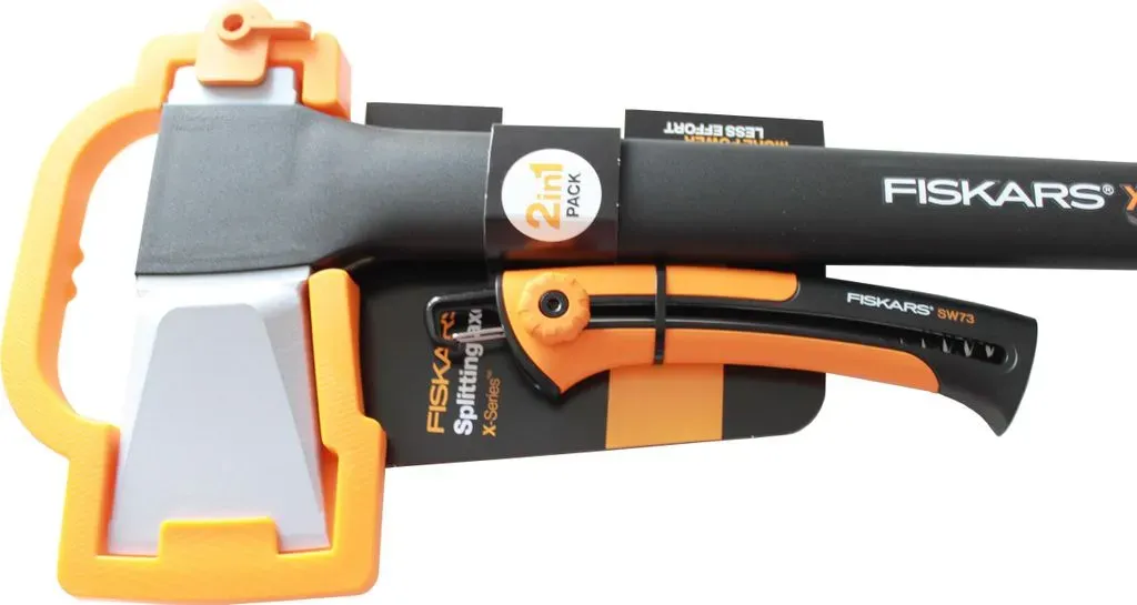 2 Händlerangebote bei billiger.de - Kategorie: Gartenwerkzeuge - Fiskars - Spaltaxt (Gesamtlänge: 72 cm) zum Spalten großer Stammstücke 30 cm, Handsäge (Sägeblattlänge: 16 cm) für frisches Holz bis 12 cm, Für Rechts- und Linkshänder Axt: Extra scharfe Klinge aus doppelt gehärtetem Stahl mit hochwertiger Außenbeschichtung, Handsäge: Fester Halt dank rutschfester Oberfläche am Griff, Fingerschutz durch gebogenes Griff-Ende Axt: Langlebiger Stiel aus wetterbeständigem, glasfaserverstärktem Kunststoff, Handsäge: Saubere Schnittergebnisse dank spezieller, grober Zahnung, Einziehbares Sägeblatt Axt: Made in Finland, Hohe Langlebigkeit, Einfaches Nachschleifen mit separat erhältlichem Axtschärfer (Art.-Nr.: 1000601), Handsage: Hohe Langlebigkeit dank Stahl-Sägeblatt und Kunststoff-Griff Lieferumfang: 1x Fiskars Spaltaxt, 77 cm (im Klingen-/Transportschutz), 2,4 kg, Stahl/Kunststoff, 1x Fiskars Handsäge, Länge: 35 cm, Sägeblatt: 16 cm, 130 g, Rostfreier Stahl/Kunststoff, Schwarz/Orange, 1025437 - GTIN:6411501200150 ![]() ![]() FISKARS Set Axt X25 + Säge SW73