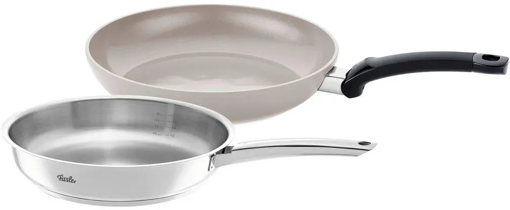 Kategorie: Pfannen - Fissler - GTIN:4009209420424 - Fissler Pfannenset CERATAL CLASSIC - Perfektion in Schwarz. Entdecken Sie das Fissler Pfannenset CERATAL CLASSIC, ein Muss für jede moderne Küche. Dieses Set besteht aus zwei Pfannen mit Durchmessern von 24 cm und 28 cm, ideal für alle Ihre Kochbedürfnisse. Die Hauptfarbe Schwarz verleiht diesen Pfannen einen eleganten und zeitlosen Look, der in jeder Küche stilvoll aussieht. Hergestellt in Deutschland, steht dieses Pfannenset für höchste Qualität und Langlebigkeit. Das Hauptmaterial Aluminium sorgt für eine optimale Wärmeverteilung und Bratergebnisse, die Sie begeistern werden. Genießen Sie ein unvergleichliches Kocherlebnis mit diesem hochwertigen Pfannenset.Fissler Pfannenset CERATAL CLASSIC - Made in Germany Erleben Sie deutsche Handwerkskunst in Ihrer Küche mit dem Fissler Pfannenset CERATAL CLASSIC. Dieses Set überzeugt nicht nur durch seine hochwertige Verarbeitung, sondern auch durch seine vielseitige Einsetzbarkeit. Egal, ob Sie ein schnelles Frühstück oder ein aufwendiges Abendessen zubereiten möchten, diese Pfannen bieten Ihnen die Flexibilität, die Sie benötigen. Die robusten Aluminiumpfannen sind leicht zu reinigen und gewährleisten eine lange Lebensdauer. Verleihen Sie Ihrem Kocherlebnis neuen Glanz und bestellen Sie das Fissler Pfannenset CERATAL CLASSIC noch heute! - 119,00 Euro bei Zurbrüggen Wohn-Zentrum - gefunden von billiger.de Dieses 2-teilige Pfannenset von XXXLutz.de bietet eine gute Kombination aus Größen und ist antihaftbeschichtet. ![]() ![]() Fissler Pfannenset Ceratal Classic + Pure, Beige, Edelstahl, Metall, 2-teilig, antihaftbeschichtet, Kochen, Pfannen, Pfannensets