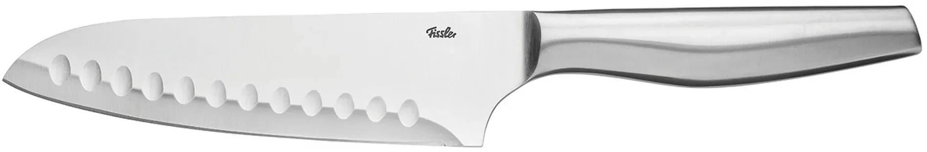 Kategorie: Küchenmesser - Fissler - GTIN:4009209415192 - FISSLER Messerserie ESSENTIAL Brotmesser 19 cm Klingenlänge Die Messerserie ESSENTIAL bietet für jeden Einsatz das passende Werkzeug. Klingen aus gehärtetem, rostfreiem Edelstahl mit Hohlschliff sorgen für eine besonders scharfe Schneide, der halbe Kropf ermöglicht deren volle Nutzung. Das Brotmesser mit seiner 19 cm langen Klinge mit grobem Wellenschliff eignet sich nicht nur perfekt für das Schneiden von Brot und Braten mit knuspriger Kruste, sondern auch zum Zerteilen von Obst und Gemüse mit harter Schale. Ideal zum Schneiden von Brot und knusprigem Braten sowie Zerteilen von Obst und Gemüse mit harter Schale Klinge aus gehärtetem, rostfreiem Edelstahl mit Hohlschliff Lange Klinge mit grobem Wellenschliff Halber Kropf ermöglicht die volle Nutzung der Schneide Maße: Klingenlänge 19 c... - 29,90 Euro bei 1a-neuware.de - gefunden von billiger.de Das Santokumesser mit 16,5 cm Kullenschliff ist ideal für präzises Schneiden von Gemüse, Fisch und Fleisch. ![]() ![]() FISSLER Serie ESSENTIAL Santokumesser 16,5 cm mit Kullenschliff