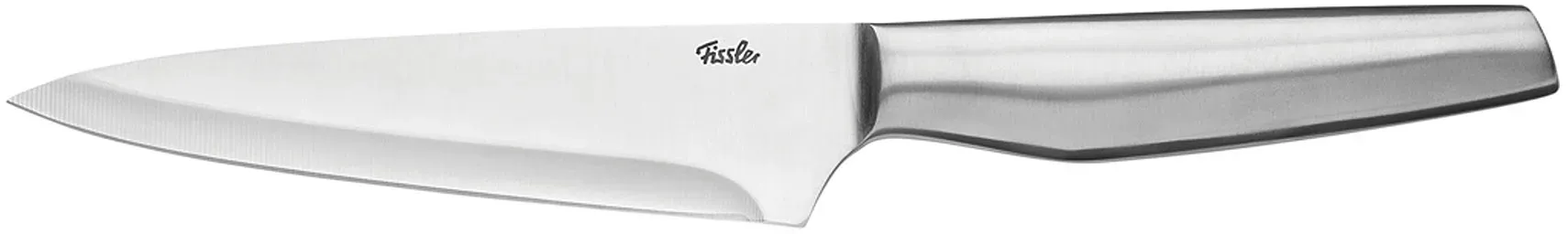 Kategorie: Küchenmesser - Fissler - GTIN:4009209415208 - FISSLER Messerserie ESSENTIAL Kochmesser 18 cm Klingenlänge Die Messerserie ESSENTIAL bietet für jeden Einsatz das passende Werkzeug. Klingen aus gehärtetem, rostfreiem Edelstahl mit Hohlschliff sorgen für eine besonders scharfe Schneide, der halbe Kropf ermöglicht deren volle Nutzung. Das Kochmesser mit 18 cm Klingenlänge ist das Multitalent für alle Schneidarbeiten in der Küche - ideal zum Schneiden von Fleisch, Fisch und Gemüse ebenso wie für feinere Arbeiten wie das Würfeln von Zwiebeln oder das Wiegen von Kräutern. Ideal zum Wiegen sowie zum Schneiden von Fleisch, Obst, Gemüse und Fisch Klinge aus gehärtetem, rostfreiem Edelstahl mit Hohlschliff Halber Kropf ermöglicht die volle Nutzung der Schneide Maße: Klingenlänge 18 cm, Gesamtlänge 32,5 cm - 29,90 Euro bei 1a-neuware.de - gefunden von billiger.de Dieses Brotmesser mit 19 cm Wellenschliff sorgt für saubere Schnitte bei Brot und Gebäck. ![]() ![]() FISSLER Serie ESSENTIAL Brotmesser 19 cm Wellenschliff
