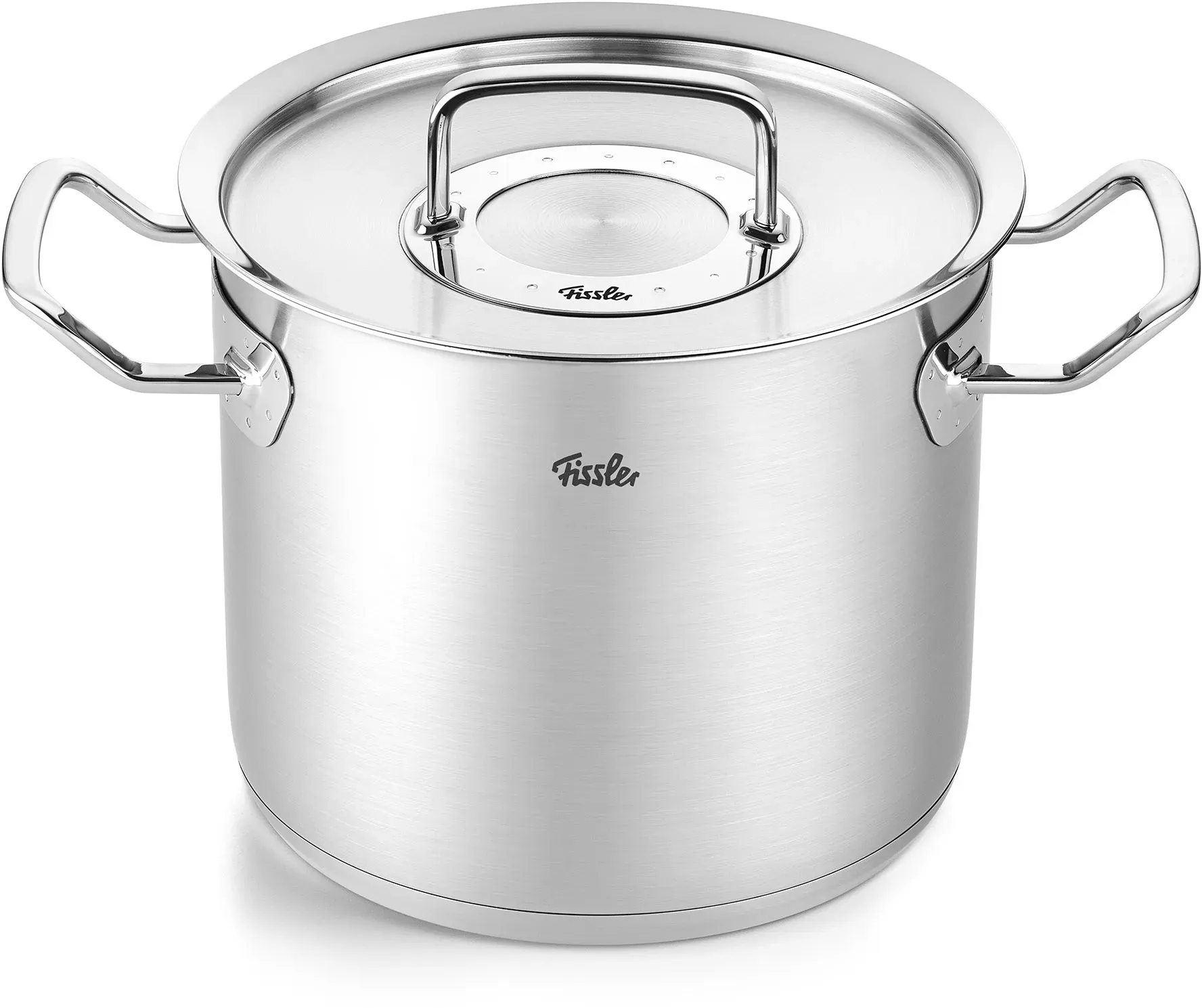 lieferbar-in 4-5 Werktagen bei dirFissler Kochtopf ORIGINAL-PROFI COLLECTION , Edelstahl 18/10 (2-tlg), mit breitem Schüttrand, Kaltmetallgriffen. Made in Germany silberfarben 4 l | 20 cm