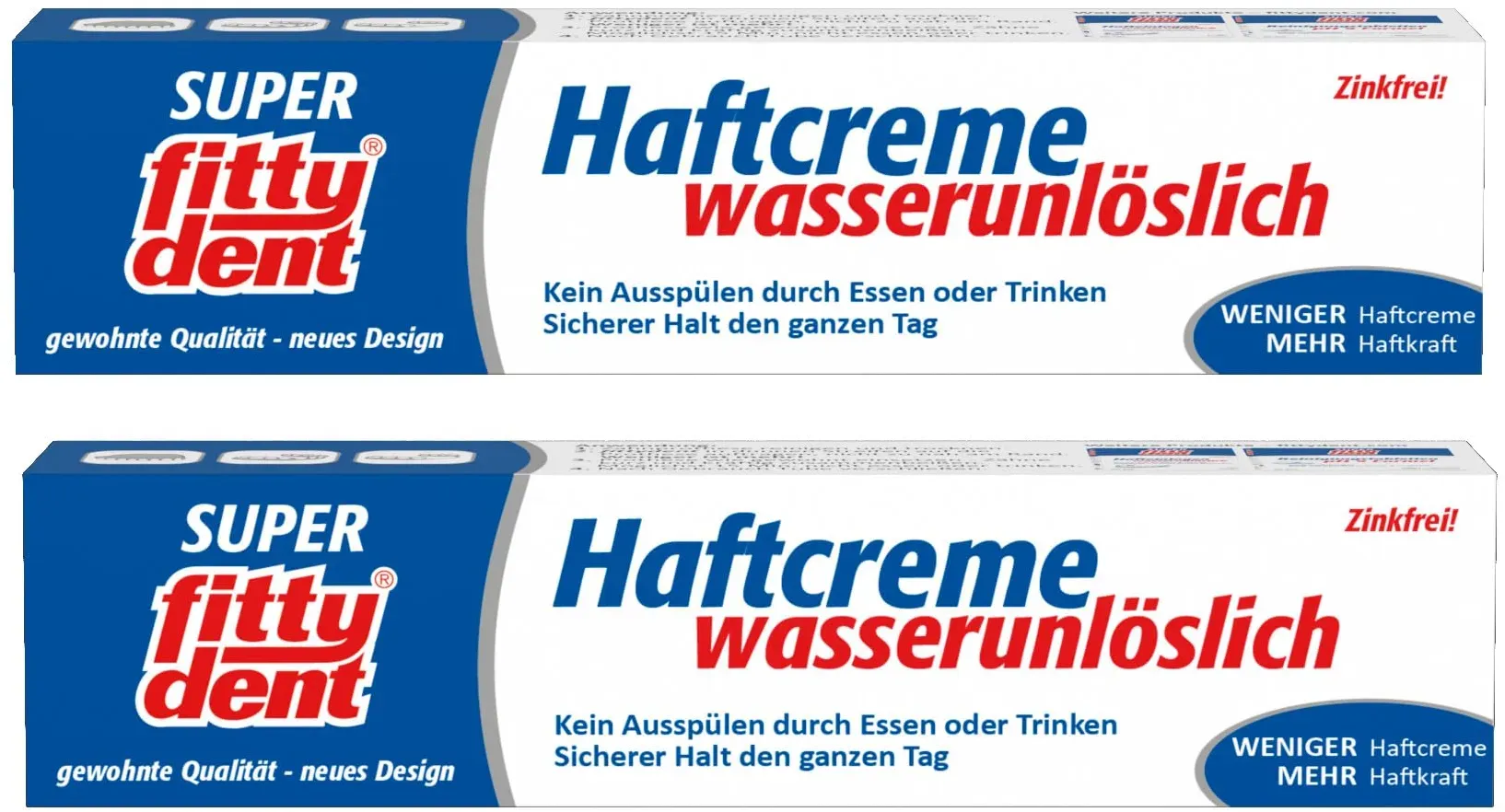 Kategorie: Zahnpflegeartikel - FITTY-DENT - GTIN:0659436125384 - PREMIUM: Das Spezialprodukt für Ober- und Unterkieferprothesen Träger - kein Verrutschen oder Verschieben der Prothese | Geschmacksneutral - Ohne Farb- und Aromastoffe | zinkfrei SICHERER UND FESTER HALT: Die Super Haftcreme bieten dem Träger von Ober- und Unterkieferprothesen einen rt sicheren und festen Halt | Hält den ganzen Tag mit nur einmal auftragen WASSERUNLöSLICH: Die einzige wasserunlösliche Haftcreme auf dem Markt | Kein Ausspülen beim Essen, Trinken oder hoher Speichelproduktion 1 x TäGLICH: Klebt am Gaumen anstatt nur zu haften wir herkömmliche Haftmittel. Bitte berücksichtigen Sie bei erstmaliger Anwendung, dass bei fittydent, anders als bei anderen Haftcremes weniger Haftcreme mehr Haftkraft bedeutet ! QUALITäT: Medizinprodukt | fittydent super Haftcreme ist deutschen Apotheken & Drogeriemärkten erhältlich - 7,99 Euro bei Amazon Marketplace Automotive - gefunden von billiger.de Dieses 2er-Pack ist eine gute Option für diejenigen, die einen Vorrat anlegen möchten. ![]() ![]() FITTY-DENT 2 x FITTYDENT super Haftcreme 40 g Paste - Langer Halt & starke Haftkraft. Speziell für schmale und flache Unterkiefer