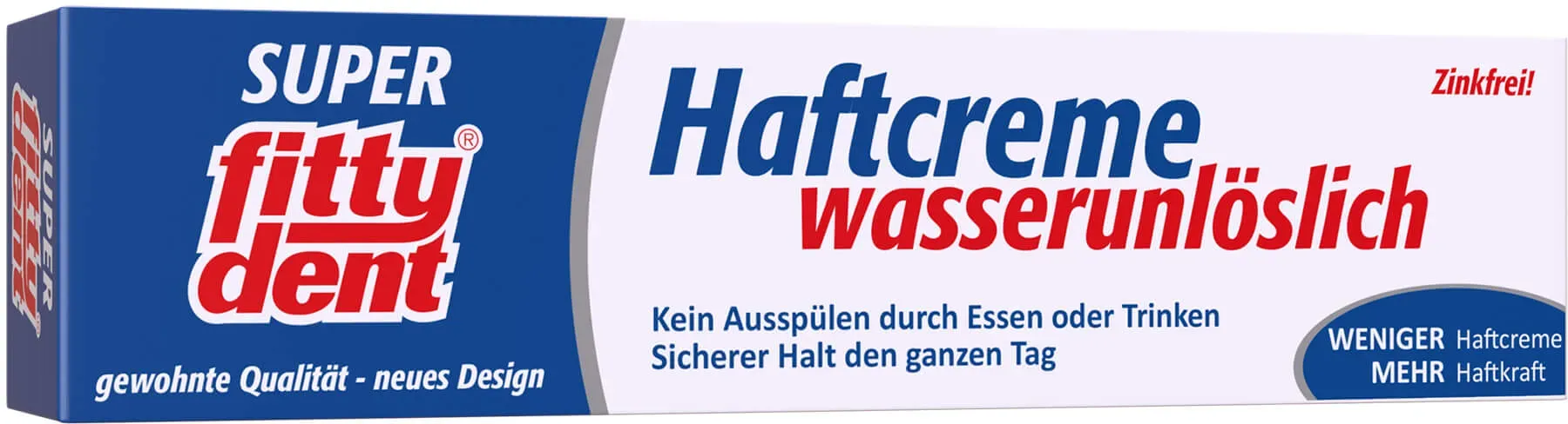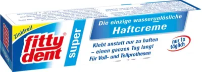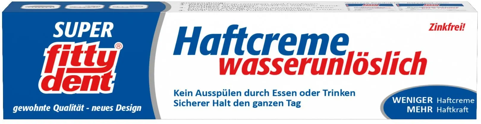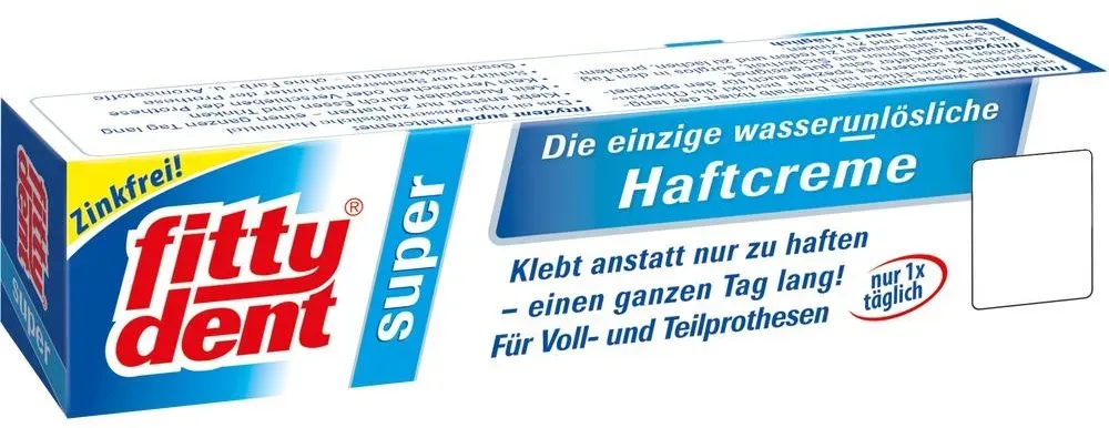Zusammenfassung für Ihre Kaufentscheidung: | Merkmal | Details | |--------------------------|------------------------------------------------| | Haftkraft | Sehr stark, wasserunlöslich, hält bis zu 12 Std. | | Anwendung | Für Ober- und Unterkieferprothesen, sparsam dosieren | | Geschmack | Geschmacksneutral, keine Farb- oder Aromastoffe | | Preis | Ca. 6,80 € bis 7,80 € für 40 g | | Beliebtheit | Sehr gut bewertet (ca. 4,3/5 Sterne) | | Besonderheiten | Einzige wasserunlösliche Haftcreme, langanhaltend | Wenn Sie Wert auf sehr sicheren, langanhaltenden Halt legen und bereit sind, etwas mehr zu investieren, ist die Fittydent Super Haftcreme eine empfehlenswerte Wahl. Achten Sie beim Kauf auf die 40-g-Packung und vergleichen Sie Preise, da diese leicht variieren können. Für die Suche im Meta-Preisvergleich können Sie direkt nach Fittydent Super Haftcreme 40 g suchen, um die besten Angebote zu finden. Jetzt live Suche nach fittydent super haftcreme 40 g starten! Empfohlene Fittydent super haftcreme 40 g Angebote*Durch Käufe über Links zu Händlern kann diese Website eine Provision erhalten, u.a. durch das eBay Partner Network und das AmazonPartnerNetDieses Angebot ist das günstigste Einzelprodukt und somit ideal für preisbewusste Käufer. ![]() ![]() Fittydent Super Haftcreme 40 g