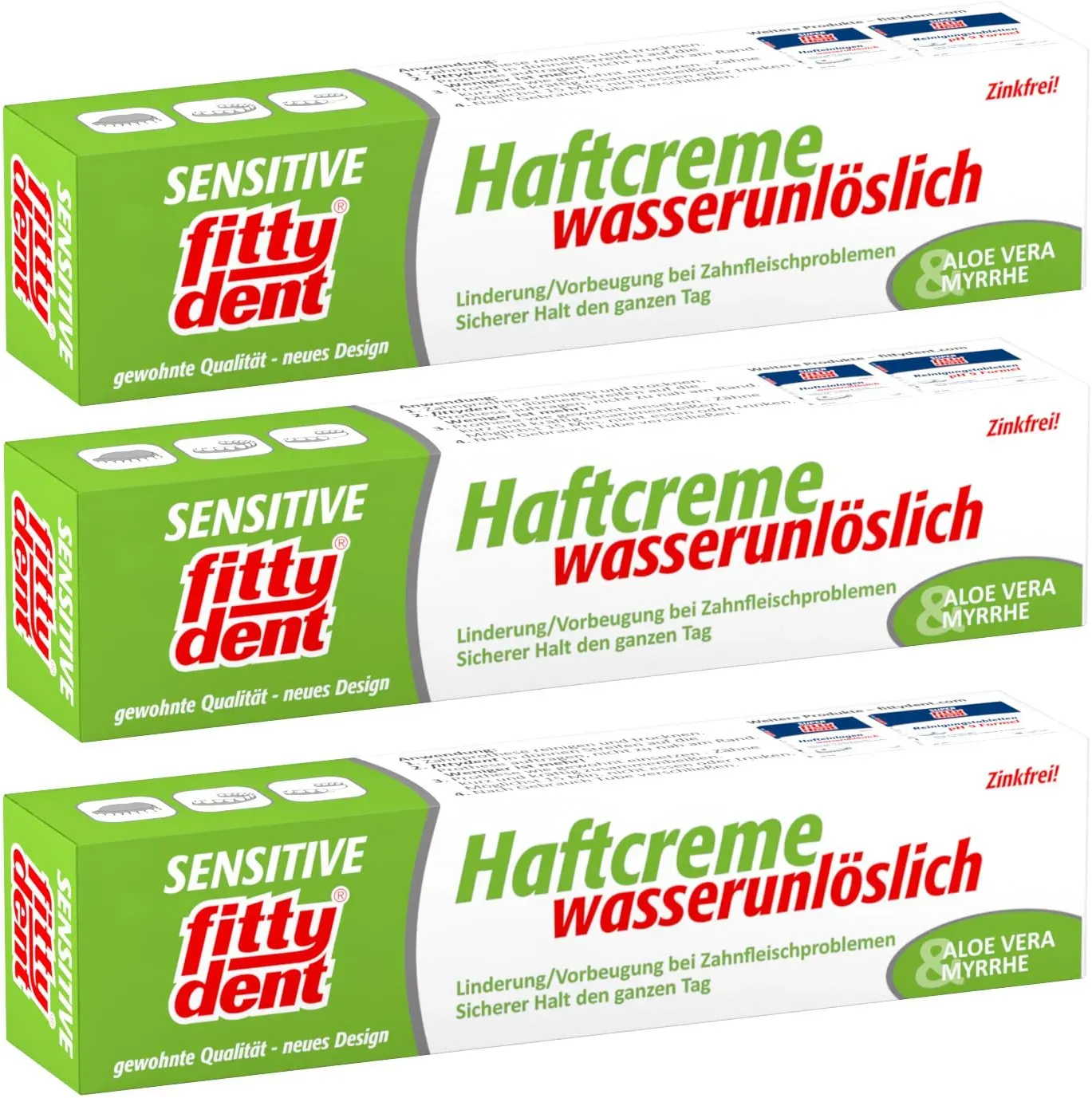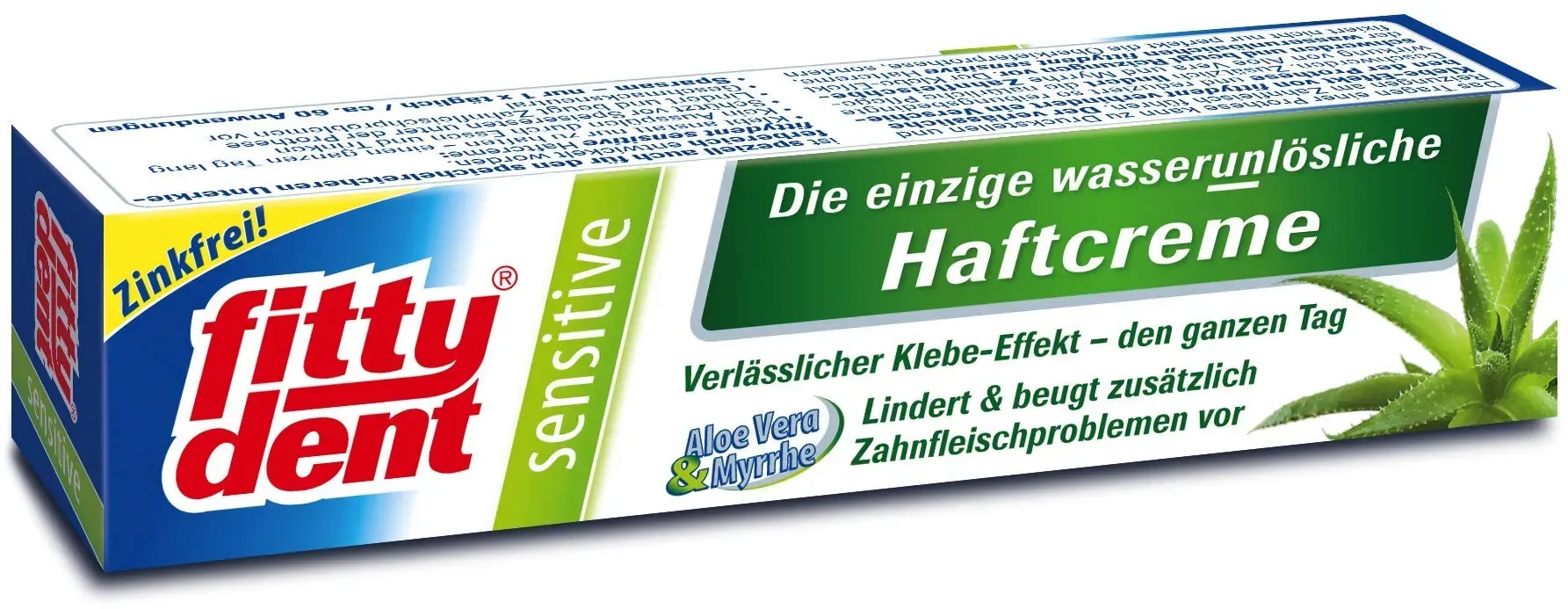 Kategorie: Zahnpflegeartikel - FITTY-DENT - GTIN:0659436125414 - PREMIUM: Das Spezialprodukt für Ober- und Unterkieferprothesen Träger - kein Verrutschen oder Verschieben der Prothese | Der spezielle Schutz aus Aloe Vera und Myrrhe lindert Zahnfleischprobleme und beugt Zahnfeischreizungen vor SICHERER UND FESTER HALT: Die Haftcreme bieten dem Träger von Ober- und Unterkieferprothesen einen rt sicheren und festen Halt | Hält den ganzen Tag mit nur einmal auftragen WASSERUNLöSLICH: Die einzige Wasserunlösliche Haftcreme uf dem Markt | Kein Ausspülen beim Essen, Trinken oder hoher Speichelproduktion | Klebt statt nur zu Haften einen ganzen Tag NACHHALTIG: Unser kompromissloser Qualitätsanspruch an höchstwertige Ausgangsprodukte sowie nachhaltige und umweltverträgliche Herstellung geht weit über die vorgegebenen Standarts in Deutschland hinaus QUALITäT: fittydent super Hafteinlagen sind ohne Rezept zu einem attraktiven Preis in vielen deutschen Apotheken & Drogerien erhältlich - 14,49 Euro bei Amazon Marketplace Automotive - gefunden von billiger.de Dieses 3er-Pack der sensitiven Variante bietet ein gutes Preis-Leistungs-Verhältnis für den Langzeitgebrauch. ![]() ![]() FITTY-DENT 3 x FITTYDENT super sensitive Haftcreme 40 g Paste - Die sanfte Haftcreme die einzig wasserunlösliche Haftcreme mit Aloe Vera & Myrrhe