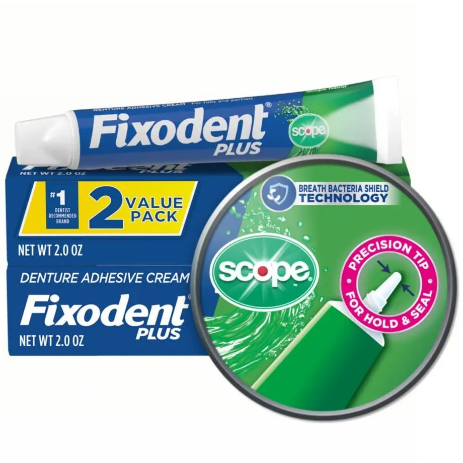 Auf Lager Versand durch AmazonFixodent Food Seal Plus Scope Denture Adhesive Cream Twin Pack, 2 Ounce by Fixodent