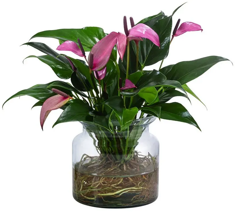 ![]() ![]() Dehner Zimmerpflanze Waterplant Flamingoblume, Anthurium Zizou, versch. Größen und Farben, pflegeleichte Wasserpflanze im Glas lila 35 cm