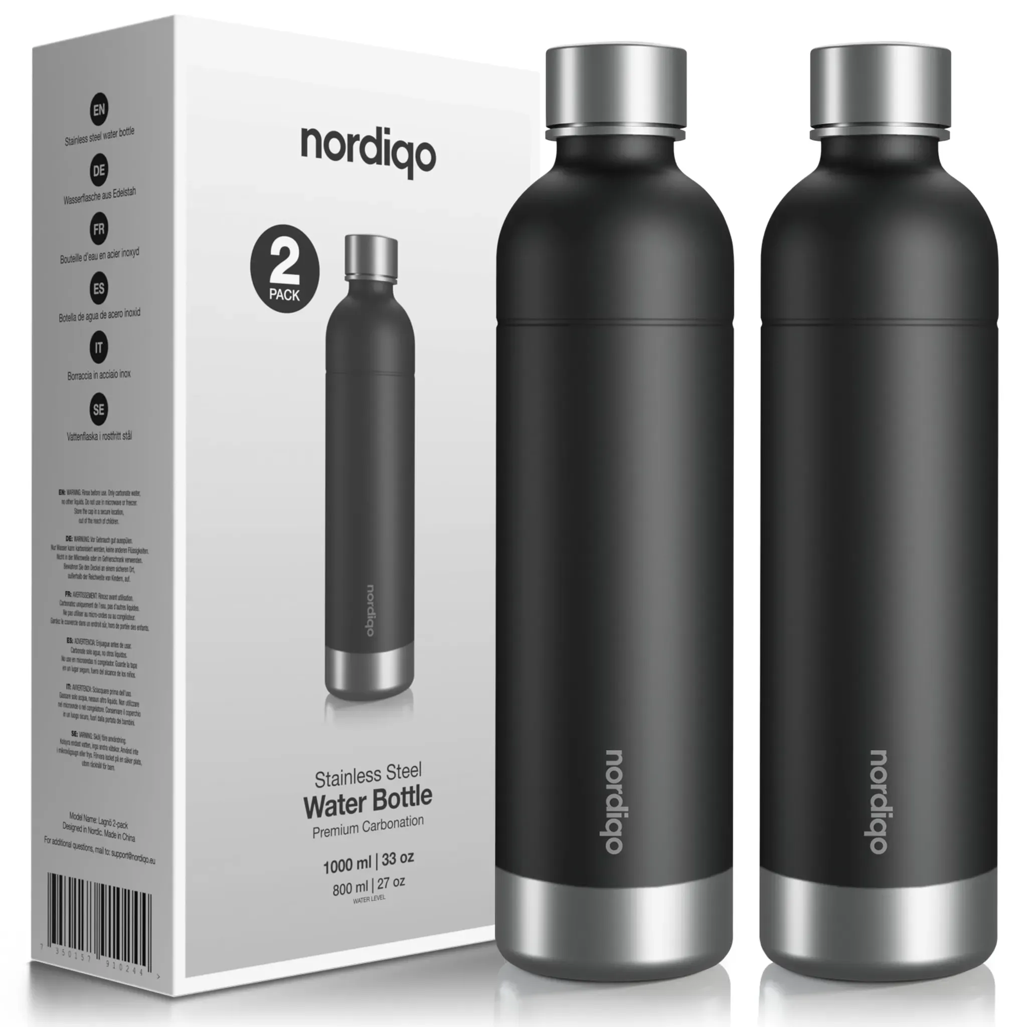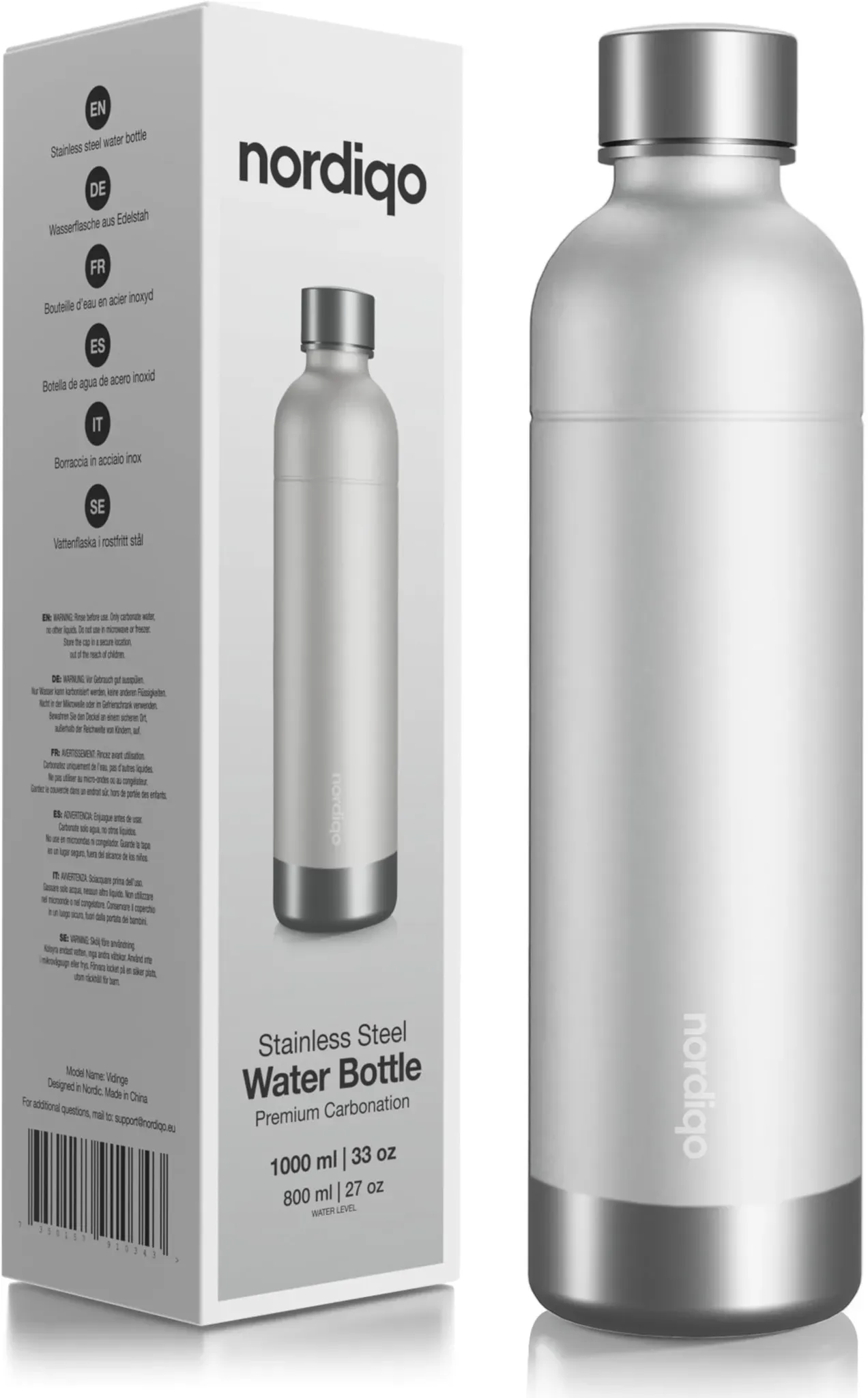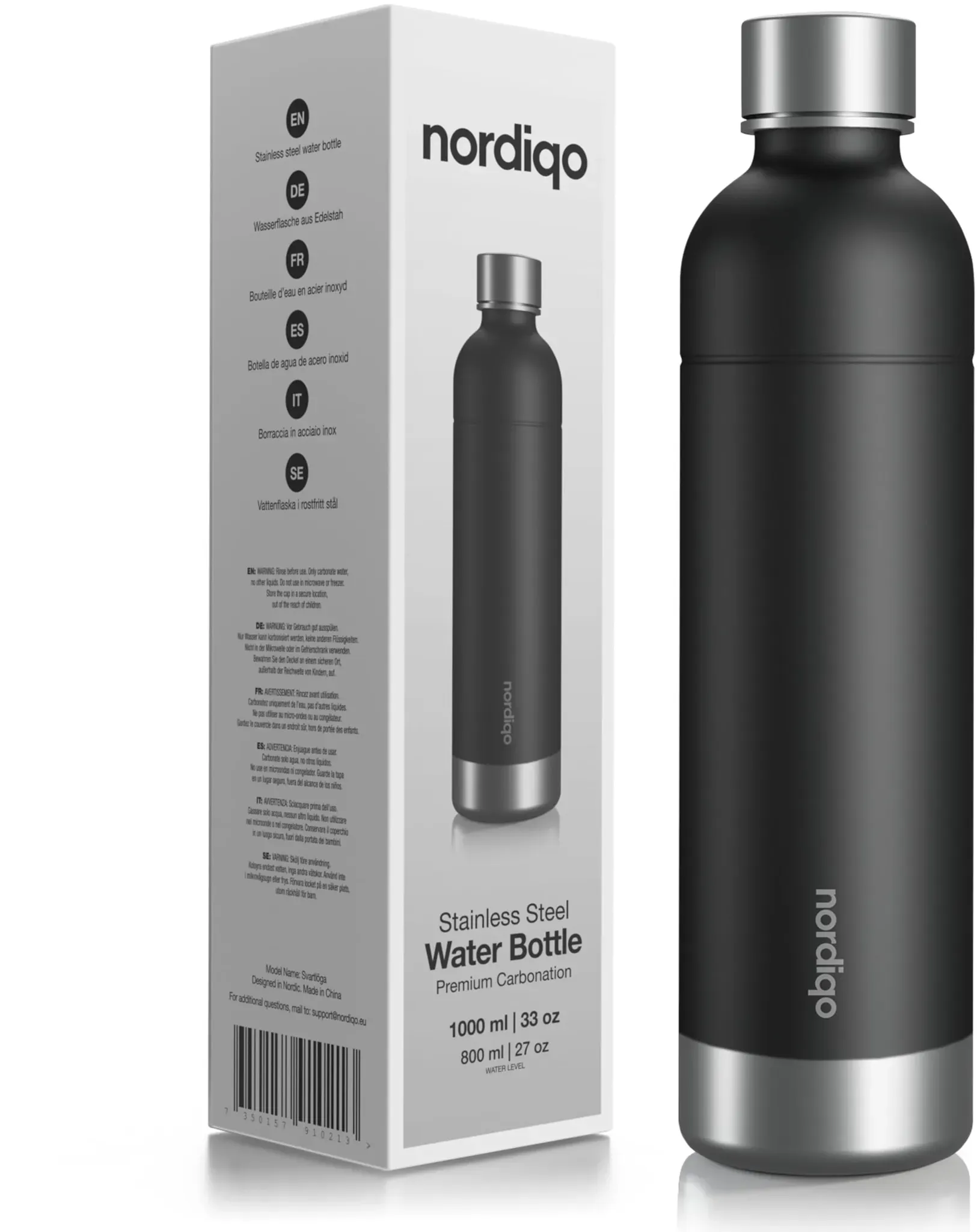 Auf Lager Versand durch AmazonNordiqo Premium 1L / 1000 ml Flasche aus edelstahl | Kompatibel mit Aarke Carbonator 3, Sodastream (exkl. Crystal + Jet) und vielen anderen | Spülmaschinenfest, Kein Verfallsdatum