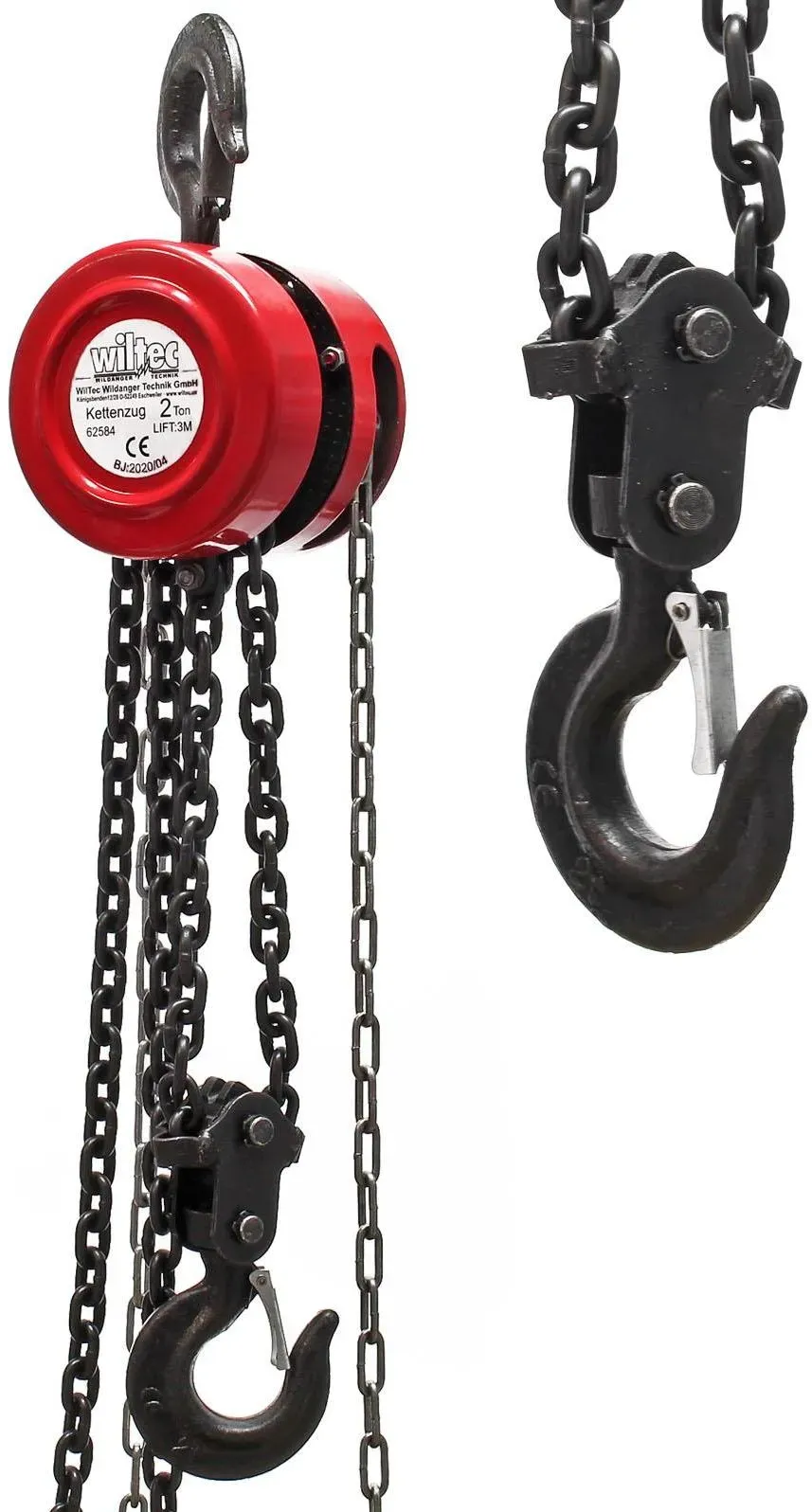 Kategorie: Werkstatteinrichtung - Baumarktplus - GTIN:4260211553603 - TRUTZHOLMProfi-Kettenzüge mit verschiedenen Längen und Tragkraft Entdecken Sie die optimale Lösung für schwere Hebearbeiten mit unseren robusten Flaschenzügen. Diese leistungsstarken Hebehelfer sind konzipiert um den anspruchsvollsten Anforderungen gerecht zu werden und bieten dabei höchste Sicherheit und Zuverlässigkeit. Unsere Kettenzüge haben eine enorme übersetzung und somit eine sehr gute Zugwirkung eine leichte Bedienbarkeit sowie eine enorme Kraftübertragung und sehr feine Dosierung der Höhe. Ideal für den Einsatzin Werkstatt Forst Landwirtschaft Handwerk Industrie Garten- und Landschaftsbau. Die beiden 360 drehbaren Haken mit Sicherheitsbügeln sorgen für flexible Einsatzmöglichkeiten und verhindern einen Lastverlust. Bestellen Sie noch heute und erleben Sie die perfekte Lösung für Ihre schweren Hebearbeiten Vorteile auf einen Blick SICHERHEIT Die jeweilige Bremse gewährleistet jederzeit eine sichere Handhabung der Last. Die drehbaren Haken ermöglichen eine flexible Positionierung und sicheren Halt. LANGLEBIGKEIT Das robuste Stahlgehäuse und die soliden Stahlketten sorgen für eine lange Lebensdauer und hohe Belastbarkeit. VIELSEITIGKEIT Ideal für den Einsatz in Werkstätten auf Baustellen in Garagen und vielen weiteren Anwendungsbereichen. EINFACHE BEDIENUNG Dank der Endlosketten ist die Handhabung besonders komfortabel und effizient Zur Auswahl stehen 1t3m triangel HSC Technische Daten Zugkraft ... Dieser Flaschenzug von Wiltec ist ein solider Allrounder mit 3m Hubhöhe zu einem fairen Preis, ideal für Werkstatt und allgemeine Hebearbeiten. ![]() ![]() Wiltec, Seilzug + Werkstattkran, Kettenzug 2000kg 2t 3m Flaschenzug Hebezug Seilzug Kran Kettenflaschenzug