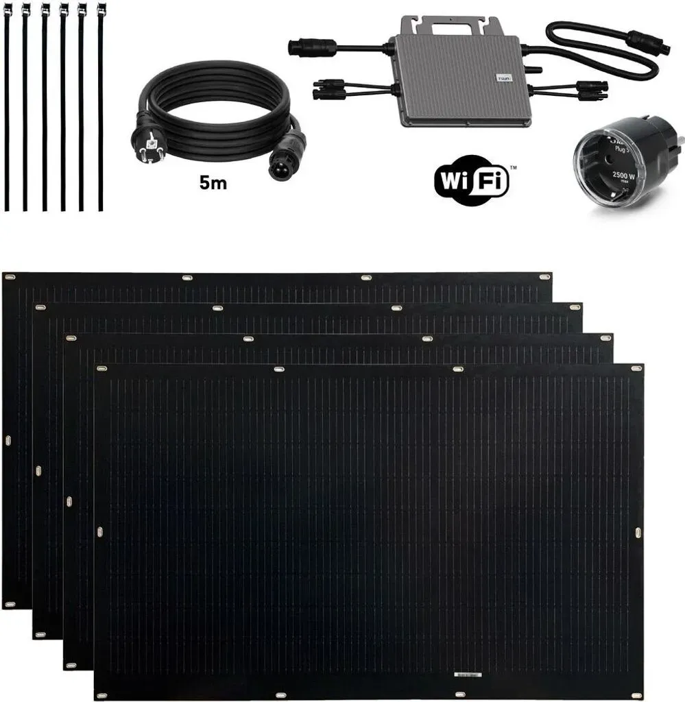 lieferbar-in 6-8 Werktagen bei dirVALE Balkonkraftwerk flexibles Solaranlage Komplettset ultraleicht mit Wechselrichter, 800 W, Monokristallin, (800 Wp (4 x 200W) flexible Solarmodule, Ecoflow Wechselrichter), Full-Black, Solarpanel Set, Flex-PV, Photovoltaik Set, App