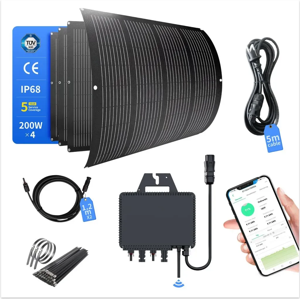 Gewöhnlich versandfertig in 3 bis 4 TagenSUNSHARE Ray 200W Balkonkraftwerk ohne Halterung Flexibles DIY Solaranlage Komplettset 800W Wechselrichter + 1x 200W Solarpanel Plug & Play Balkonkraftwerk 200W Steckdose inkl. Kabel