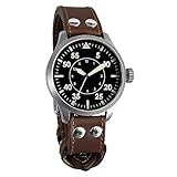 keine Angabe Nur noch 1 auf LagerAristo Flieger 47 Legende Pilot Typ B Automatik Herren Armbanduhr - Riemenband aus Sattelleder und Nieten und sandgestrahltes schwarzes Edelstahl Ziffernblatt mit Front aus Lupenglas - Made in Germany