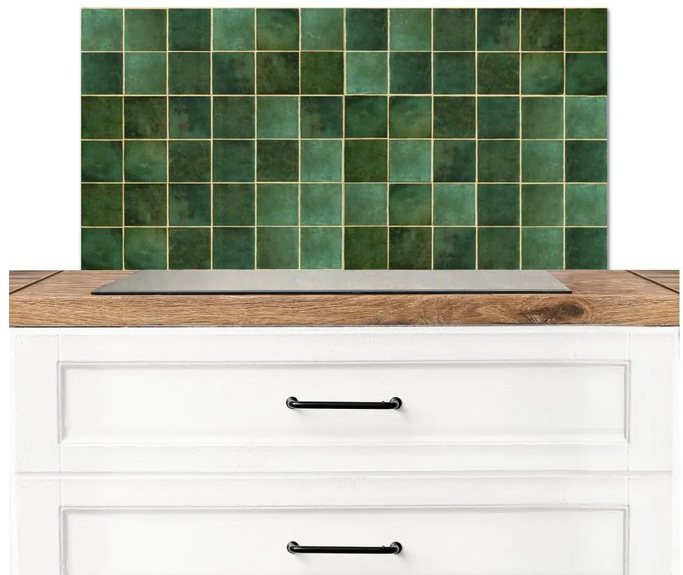 lieferbar-in 5-6 Werktagen bei dirMuchoWow Küchenrückwand Fliese - Grün - Luxus - Muster, (1-tlg), Küchenrückwand Aluminium Platte, 80x40 cm bunt 80 cm x 40 cm