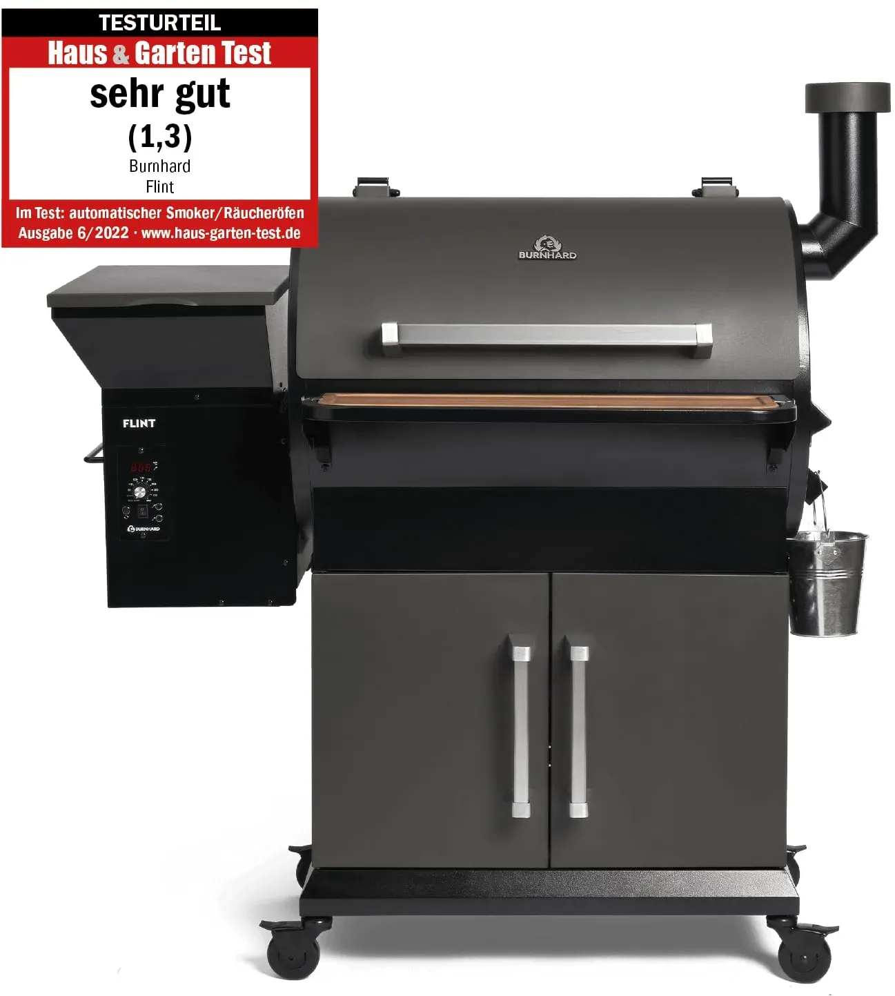 Kategorie: Grills - Burnhard - GTIN:4255758209267 - LASS RäUCHERN: Mit dem elektrisch betriebenen Pelletsmoker FLINT von BURNHARD verpasst du Fisch, Fleisch und Gemüse ein intensives Raucharoma wie beim klassischen American Barbecue. EINFACH UND PRäZISE: Smoke und grille indirekt bei Temperaturen von 70 C bis 230 C und kontrolliere die Kerntemperatur deines Grillguts über das integrierte digitale Thermometer. STARKE LEISTUNG: Dein neuer Räuchergrill fast bis zu 9 kg Pellets zum Smoken und sorgt dank konstanter Hitzeregulierung für gleichmäßige Rauchentwicklung. FETTES ZUBEHöR: FLINT kommt mit abklappbarer Frontablage inklusive herausnehmbarem Schneidebrett aus Akazienholz sowie geräumigem Unterschrank mit Regalboden. LIEFERUMFANG: UV-beständige, wetterfeste und hochwertige Abdeckhaube, Flaschenöffner, 3 Edelstahl-Grillroste, Fettauffangeimer, lenkbare Vollgummirollen - 949,00 Euro bei Amazon Marketplace Kitchen - gefunden von billiger.de Sie erhalten mehr Ergebnisse, aktuelle Angebote und weitere Preisbereiche wenn Sie den Preisvergleich aktualisieren: Mehr flint 2 Angebote Jetzt live Meta-Preisvergleich starten! Flint 2 Testberichte