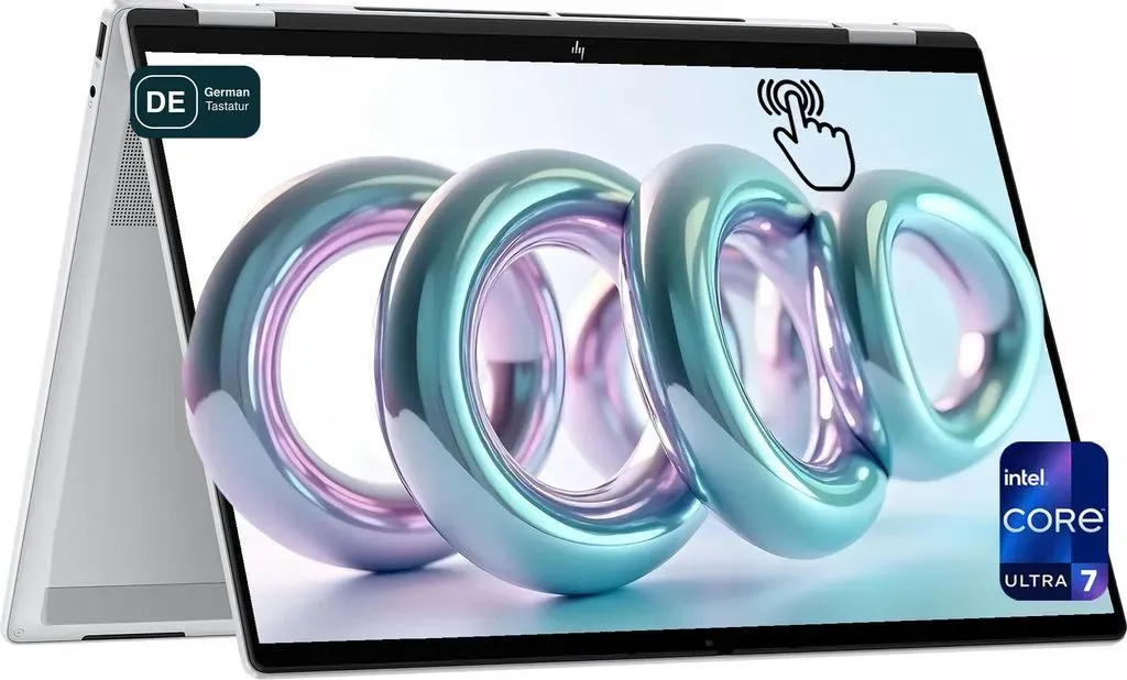 Notebooks Laptops Lifestyle Technik Computer Notebooks Zubehör - - Der HP OmniBook X Flip 16 NGAI PC kombiniert KI-gestützte Geschwindigkeit und Leistung für kreatives Arbeiten und Entertainment. Das große 16-Zoll-Display passt sich Ihren Betrachtungsbedürfnissen an - flach aufgeklappt, zusammengeklappt oder umgeklappt - und bietet aus jedem Blickwinkel lebendige Farben. Entworfen mit einem schlanken Gehäuse aus recyceltem Metall[1] und einer Tastatur mit Hintergrundbeleuchtung und großen Keycaps für ein gehobenes Benutzererlebnis., Bildschirm: Bildschirmdiagonale in Zentimeter: 40,6 cm, Bildschirmdiagonale in Zoll: 16 ″, Bildschirmauflösung in Pixel: 2880 x 1800, Auflösungsstandard: 3K, Bildschirmtechnologie: OLED-Touchscreen, Bildschirmmaterial: Glas, Verstellbarkeit Bildschirm: umklappbar, Bildschirmhelligkeit: 500 cd/m², Pixel-Reaktionszeit: 0,2, Bildwiederholungsfrequenz: 120 Hz, Speicher: Typ Festplatte: SSD, Anzahl installierter Festplatten: 1, Speicherkapazität Festplatte SSD: 1.000 GB, Größe Arbeitsspeicher (RAM): 32 GB, Typ Arbeitsspeicher: LPDDR5X, Taktung Arbeitsspeicher: 8.533 MHz, Cloudspeicher: Dropbox, Kapazität Cloudspeicher: 25, Prozessor: Prozessorhersteller: Intel, Prozessorserie: Core Ultra 7, Prozessornummer: 258V, Prozessorbauart: Okta-Core, Anzahl Prozessorkerne: 8, Taktfrequenz Prozessor: 2,2 GHz, Turbo-Taktfrequenz Prozessor maximal: 4,8 GHz, Grafikkarte: Grafikkartenhersteller: Intel, Grafikkartenserie: ARC, Modell Grafikkarte: ARC TM Graphics ... Dieses HP OmniBook X Flip Copilot+ Laptop bietet eine große 2TB SSD und 32GB RAM, ideal für anspruchsvolle Nutzer und Kreative. ![]() ![]() HP OmniBook X Flip Copilot+ Laptop, Ultra 7-258V, 16" 3K (2880x1800) Touchscreen, Deutsches Tastatur-Layout, 32 GB RAM | 2 TB SSD
