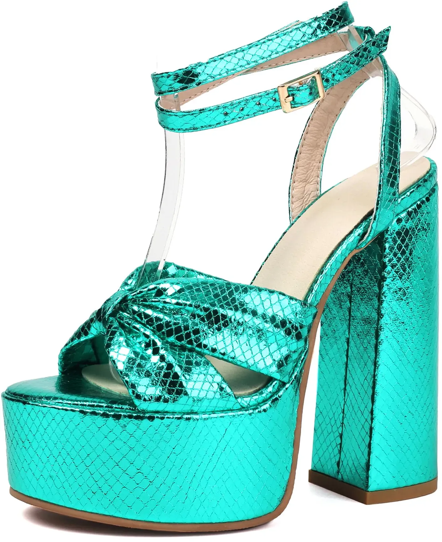 Gewöhnlich versandfertig in 4 bis 5 TagenRenessmi Runde Zehen Slingback Super Höhe Ferse Damensandalen Blockabsatz Strappy Plateau Schnalle Hochzeit Footwear Grün Gr 44 EU-46 Cn - 44 EU